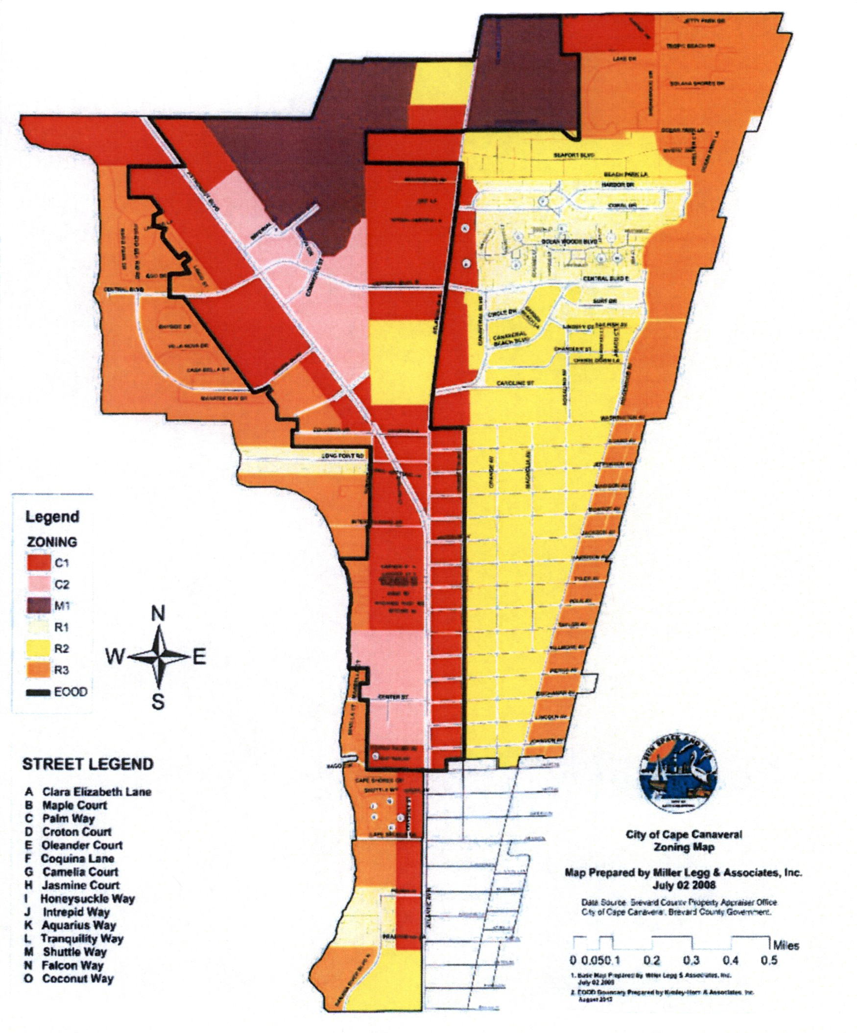 The area of the district along A1A is intended to serve as the main gateway into the City of Cape Canaveral. The area of the district along Central Boulevard is intended to serve as the main street to the City of Cape Canaveral's Town Center and as a transition between the land use, circulation, and streetscape along A1A and the Town Center. This District is intended to have the most intensive commercial and residential uses within the City. The EOOD is meant to provide a lively and attractive interface between the proposed Town Center and the adjacent residential communities, while maintaining a primarily commercial street frontage along A1A, N. Atlantic Avenue and Central Boulevard.