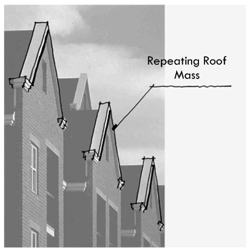 Massing: The organization of buildings and other structures relative to other District features such as parking areas, streets, and public spaces.