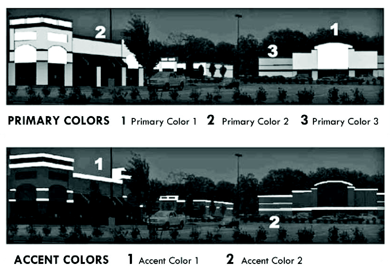 Consistency: The A1A Commercial corridor features a mixture of development types including community serving retail uses, office buildings, hotels and convention facilities, strip-commercial centers, neighborhood-serving retail, entertainment uses, attractions, and restaurants. Design of these structures has been influenced by use, age, and site dimensions. Within the context of these constraints, developments can achieve the principle of consistency through selection of colors, exterior surface materials, scale, rhythm, proportions, landscaping and sign programs.