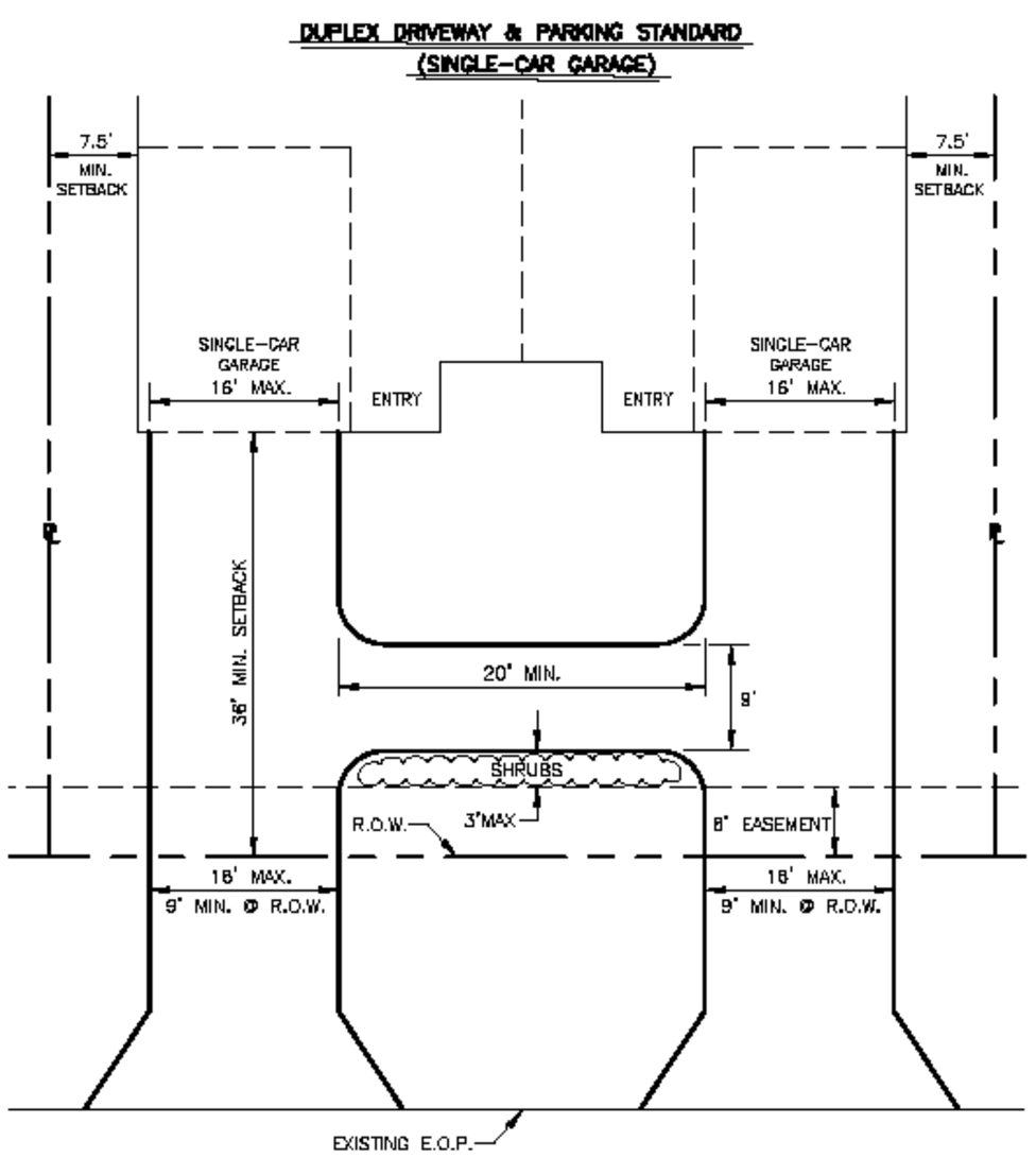 In the RMM zoning district, where lot depth is greater than 131 feet, the six-foot easement around the perimeter of the sites shall be preserved and nothing shall be placed or constructed on such easement other than a paved driveway, walkway, sidewalk, paved off-street parking areas, or a well when site conditions make it impractical to locate elsewhere. On sites with a depth of less than 131 feet, paving of the front easement for parking purposes shall be permitted.