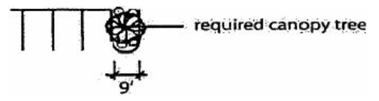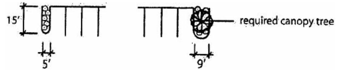 Landscaping. Landscape buffers described in LDC, Section 5.5.13.C.5. shall not be required. Where a site with nonresidential zoning shares one or more property lines with a site with residential zoning, landscaping shall include four canopy trees per 100 linear feet and a row of shrubs spaced every three feet on center along the shared property line or lines of the nonresidential site. Accent and palm trees may be substituted for canopy trees at the rate of two accent trees for every canopy tree, and three palms for every canopy tree. All shrubs shall be a minimum of 32 inches in height and be in at least a seven-gallon container size at time of planting.
