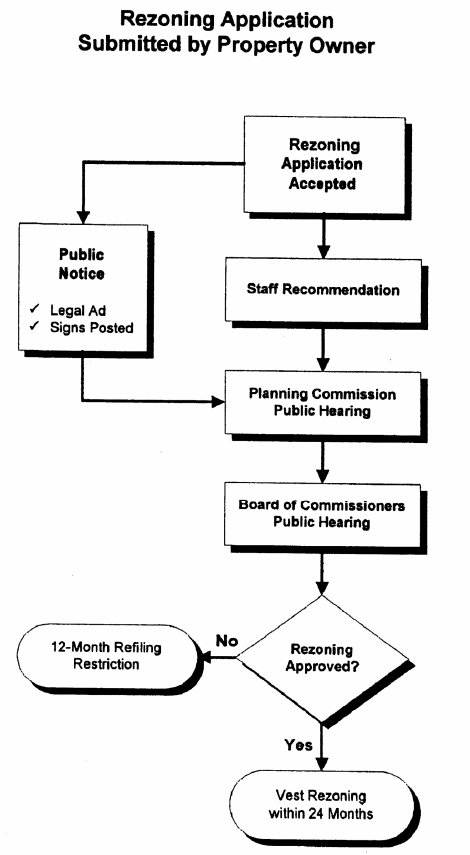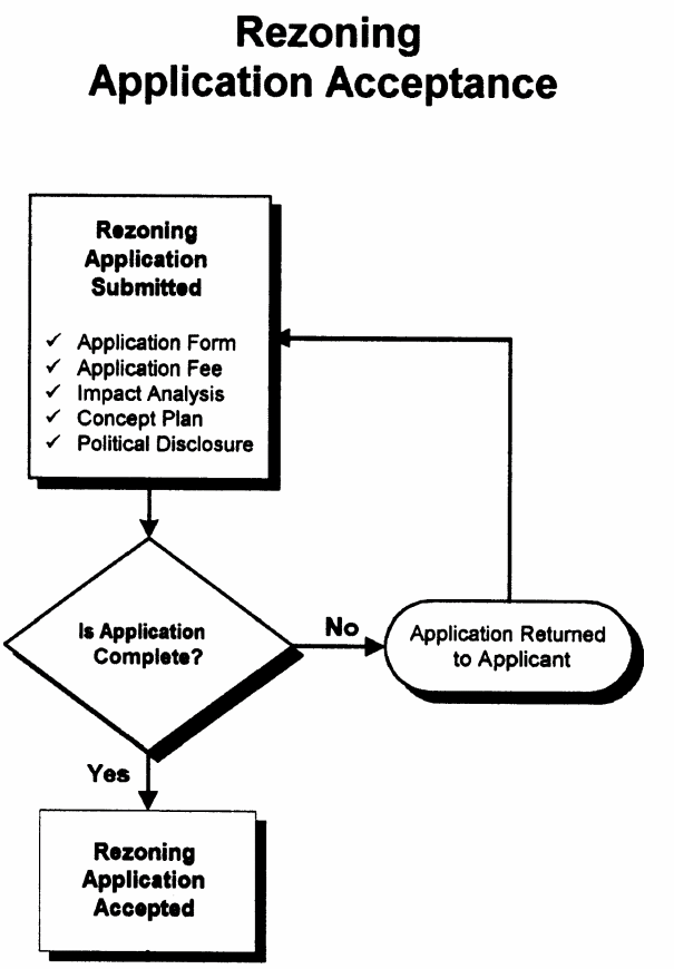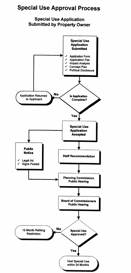 Zoning changes (rezoning or special use approval). If the property is not appropriately zoned, a request for rezoning or approval of a special use must be approved prior to development or construction. A zoning change for a subdivision, multi-family or nonresidential project must include a concept plan for the proposed development.