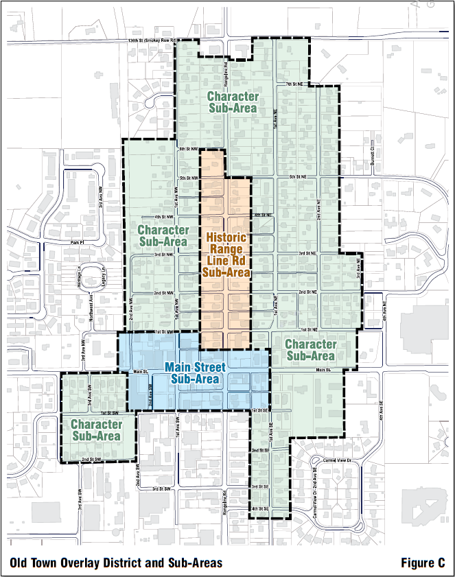 The boundaries of the Old Town Overlay District are hereby established as illustrated on Figure C: Old Town Overlay District and Sub‑Areas.