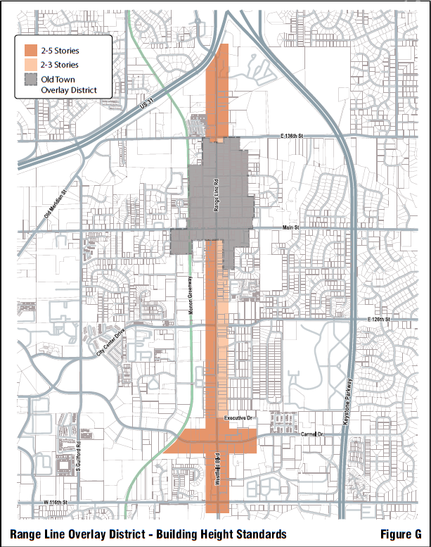 | The purpose of the Range Line Road Overlay District is to protect and enhance the health, safety and welfare of the citizens and property owners of Carmel by allowing for the establishment of an uptown business district that will support a range of activities and opportunities to all segments of the community; with mixed- uses in multi-story buildings; is pedestrian oriented and supportive of multiple modes of transportation; with buildings and a streetscape which are attractive and safely designed in order to enhance the livability of the City. It is the City’s intent to achieve the purpose of the Range Line Road Overlay District by: