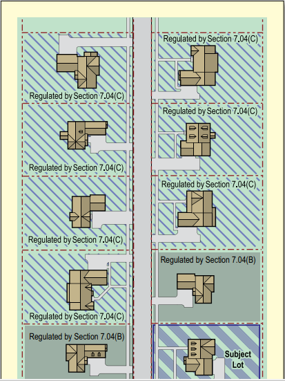 | Minimum Lot Area | 10,000 sq ft, when on public sewer and water | Average lot area shall be 10,000 sq ft and the absolute minimum lot area shall be 8,000 sq ft |