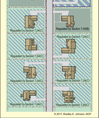 E. Alternative Compliance: An applicant may Seek to not follow the requirements above in Section 7.05(C): Primary Elevations, Large Developments or Section 7.05 (D): Primary Elevations, Small Developments, but instead submit sufficient, detailed, color facade drawings that clearly meets or exceeds the intent of those architectural standards. The architectural alternative design, if approved, shall be legally binding to the applicable townhouse buildings. The submitted facade drawings must be reviewed and approved by the Planning Adminstrator. If the proposed alternate design is not determined to clearly meet or exceed the intent of the architectural diversity standards it shall be denied and then the applicable prescribed standards in Section 7.05(C): Primary Elevations, Large Developments or Section 7.05 (D): Primary Elevations, Small Developments shall apply. If denied by the Planning Administrator, the applicant may petition the Plan Commission for the same alternate design at a regularly schedule meeting. The Plan Commission may approve or deny the proposed alternate design. Any approved alternate design shall be recorded with the title of each lot within the subdivision.