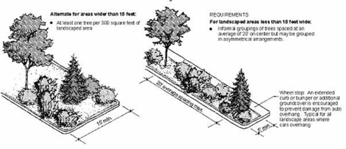 There shall be no more than eight parking spaces in a row without a landscaping island containing a tree, shrubs, and ground cover.