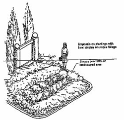 Contain plantings that at maturity will be integrated with the architectural elements (e.g., vines that will grow up a trellis).