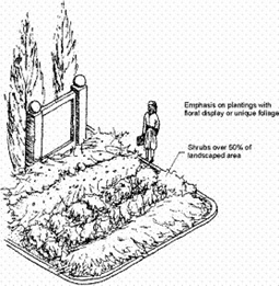 Multifamily Buildings: foundation plantings shall be provided to soften the overall impact and scale of the building. Foundation plantings shall be provided around each individual building, at the base of the building.