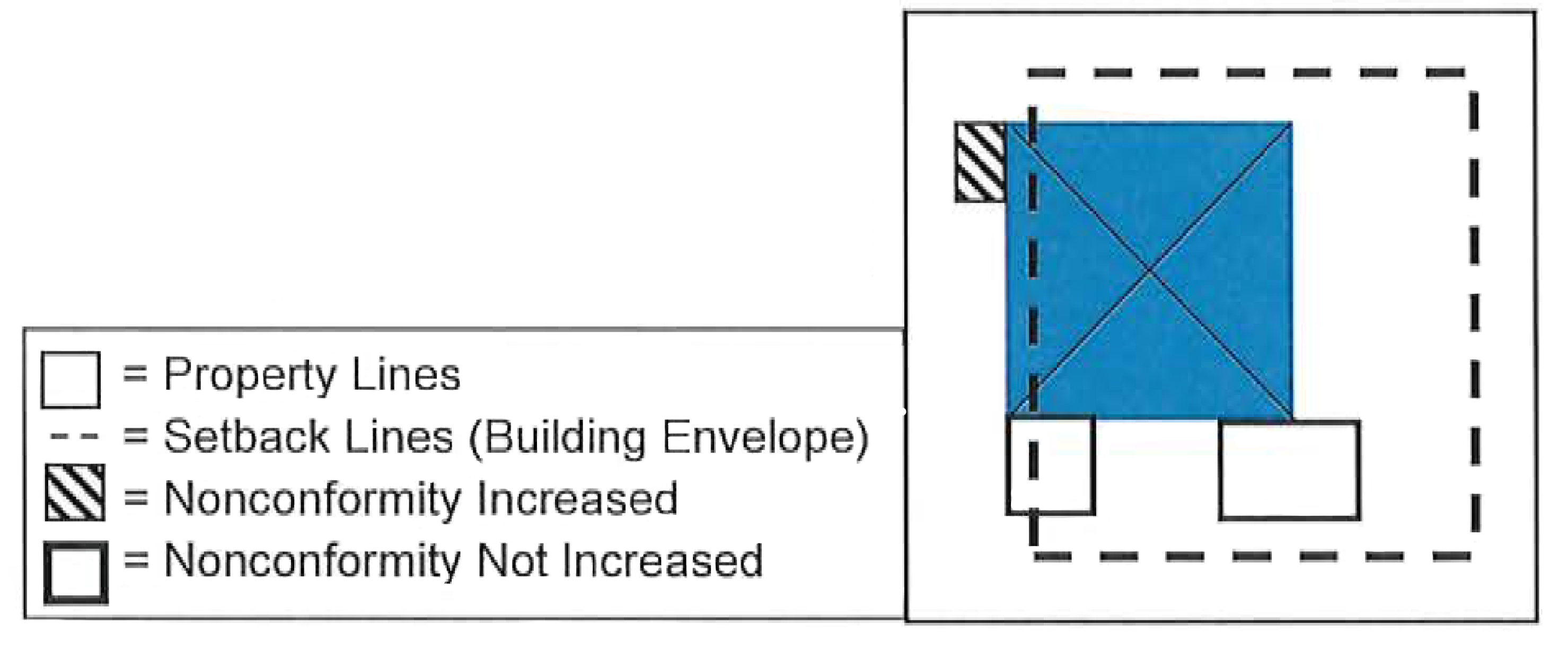 No such building may be enlarged or altered in a way which increases its nonconformity. Such structures may be enlarged or altered in a way which does not increase its nonconformity. As shown in the provided figure: