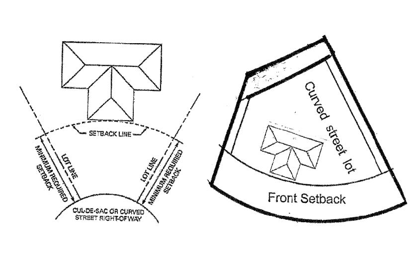 The figure below illustrates locations and methods of measuring yards on rectangular and nonrectangular lots. In each of the examples shown, the street frontage is to the bottom of the diagram.