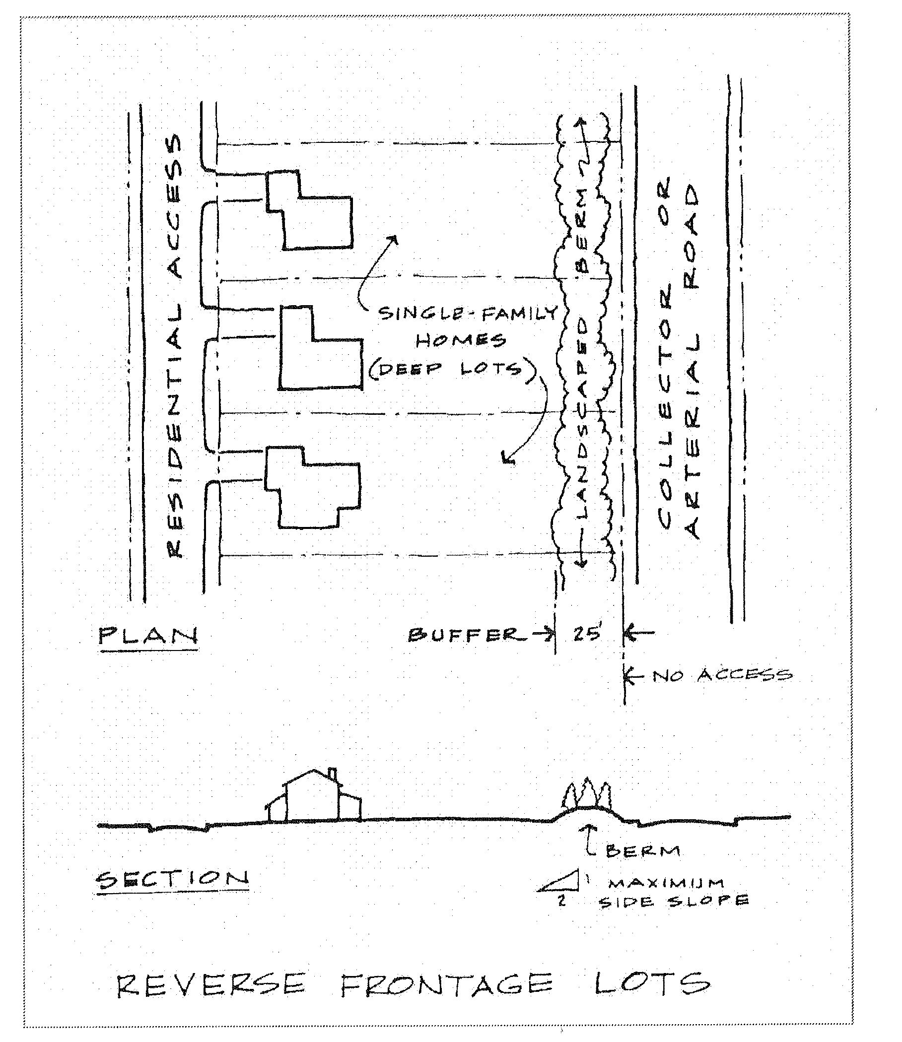 Reverse frontage lots may be utilized but are not required in major residential subdivisions where direct access to a City road, or to a State or U.S. numbered highway, is not allowed.