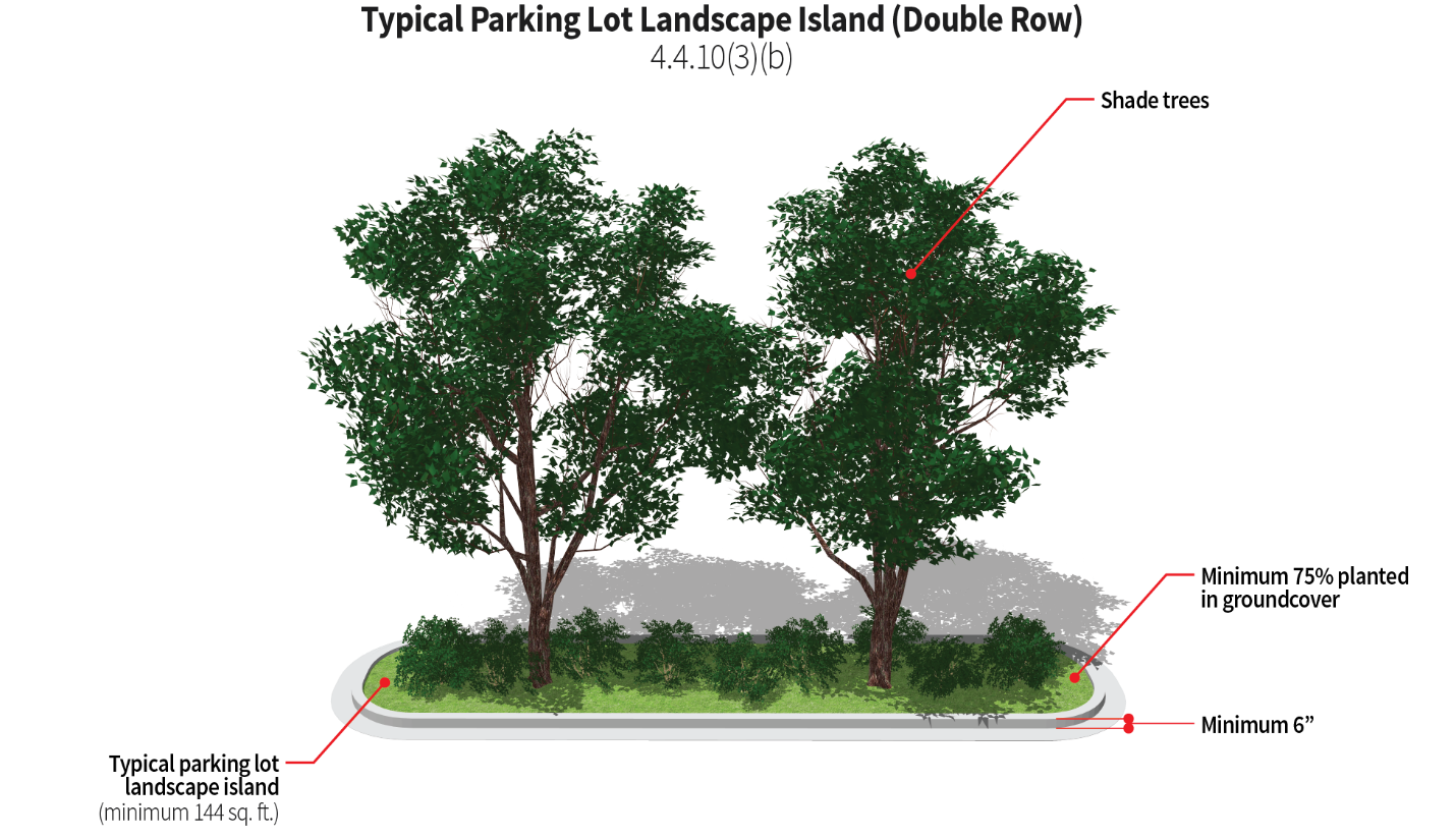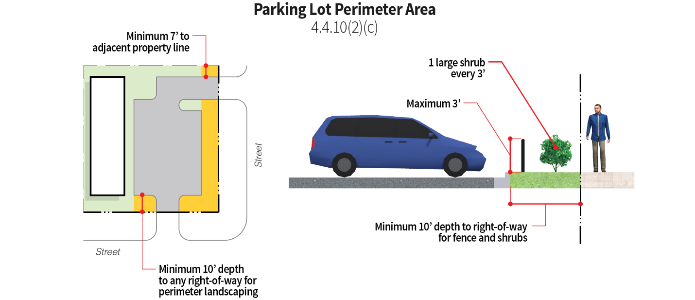 Parking should be treated with decorative elements, such as wall extensions, plantings, berms, or other innovative means, so as to screen parking areas from streets.