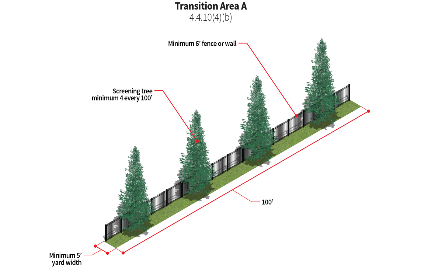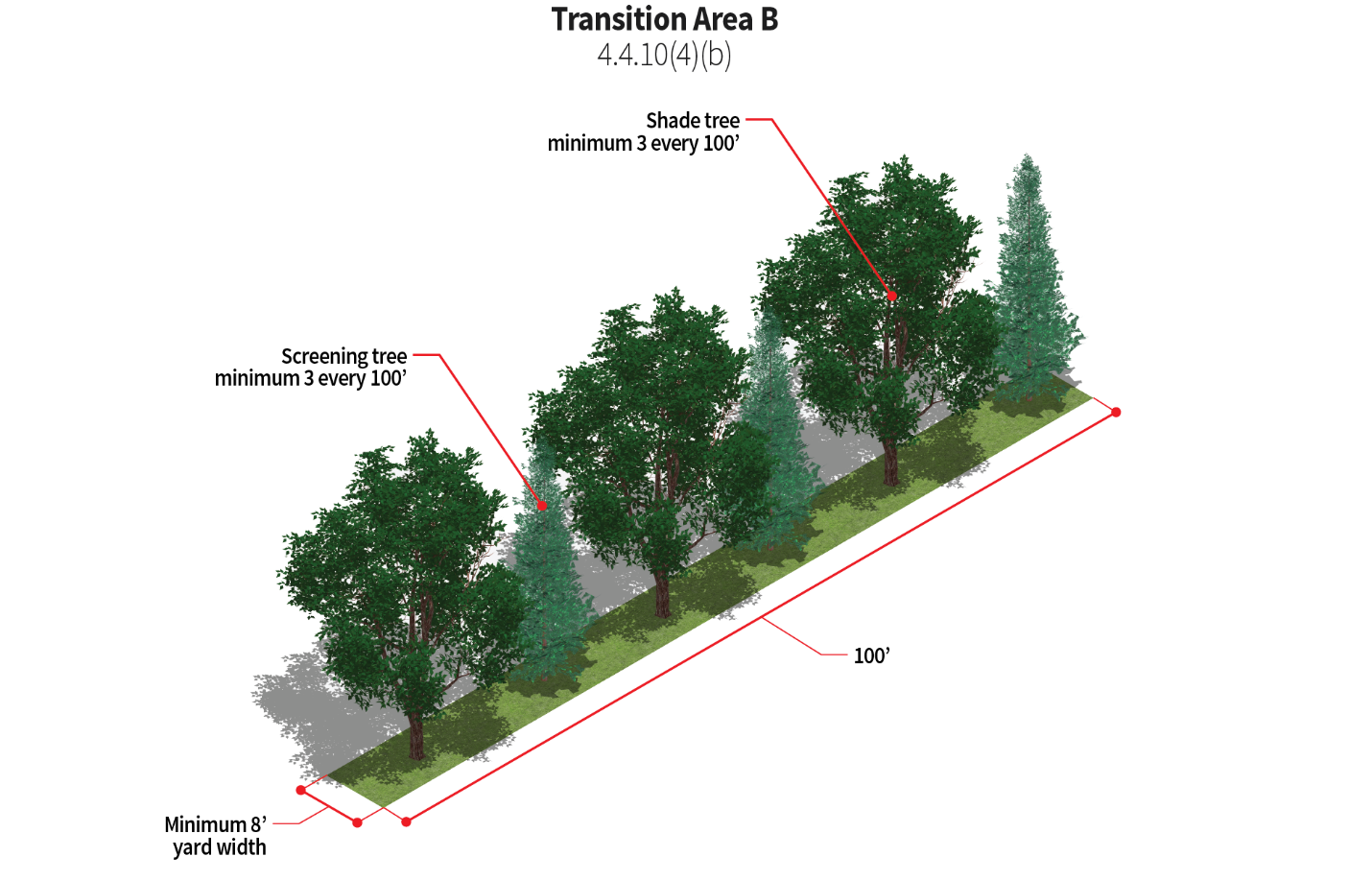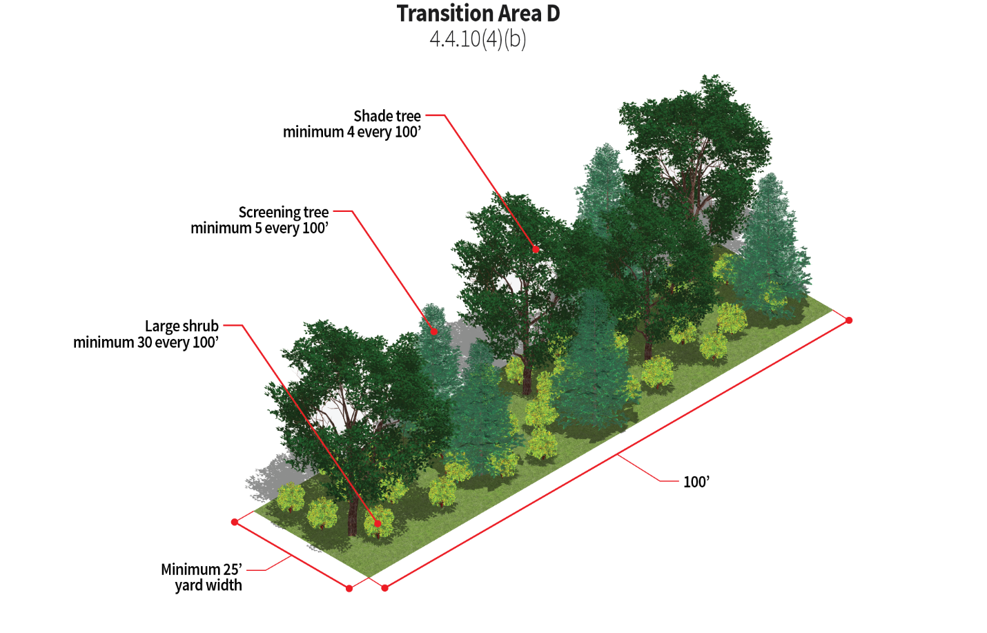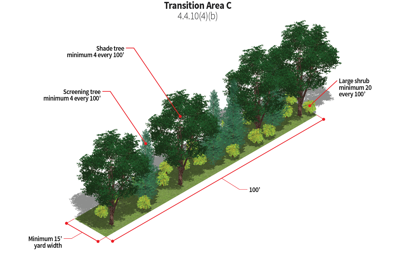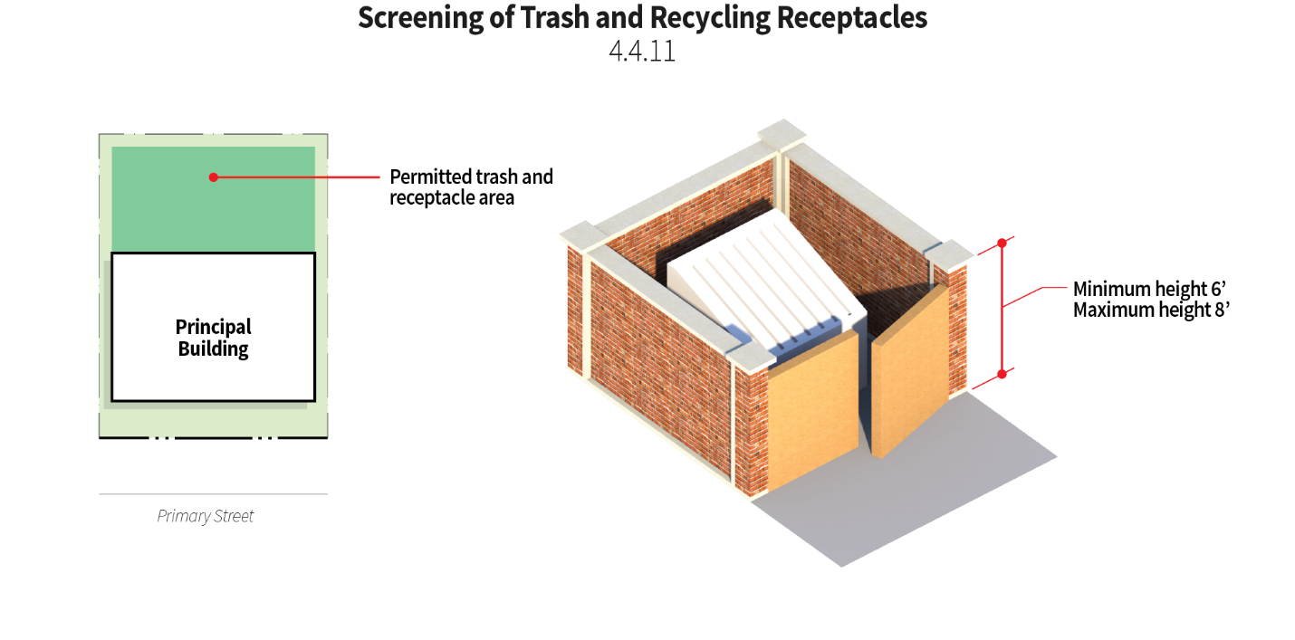Trash receptacle areas should be fully screened with a combination of evergreen shrubs and opaque materials.