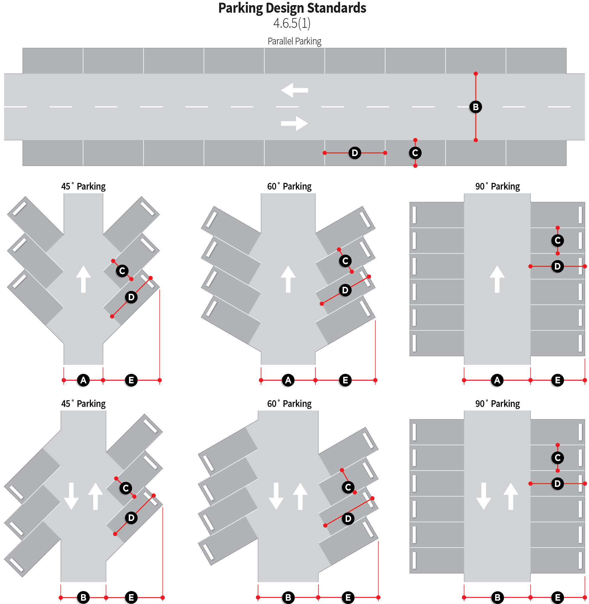Driveways, off-street parking areas, and access aisles for multi-family residential and non-residential parking lots shall be designed in accordance with the figure below.