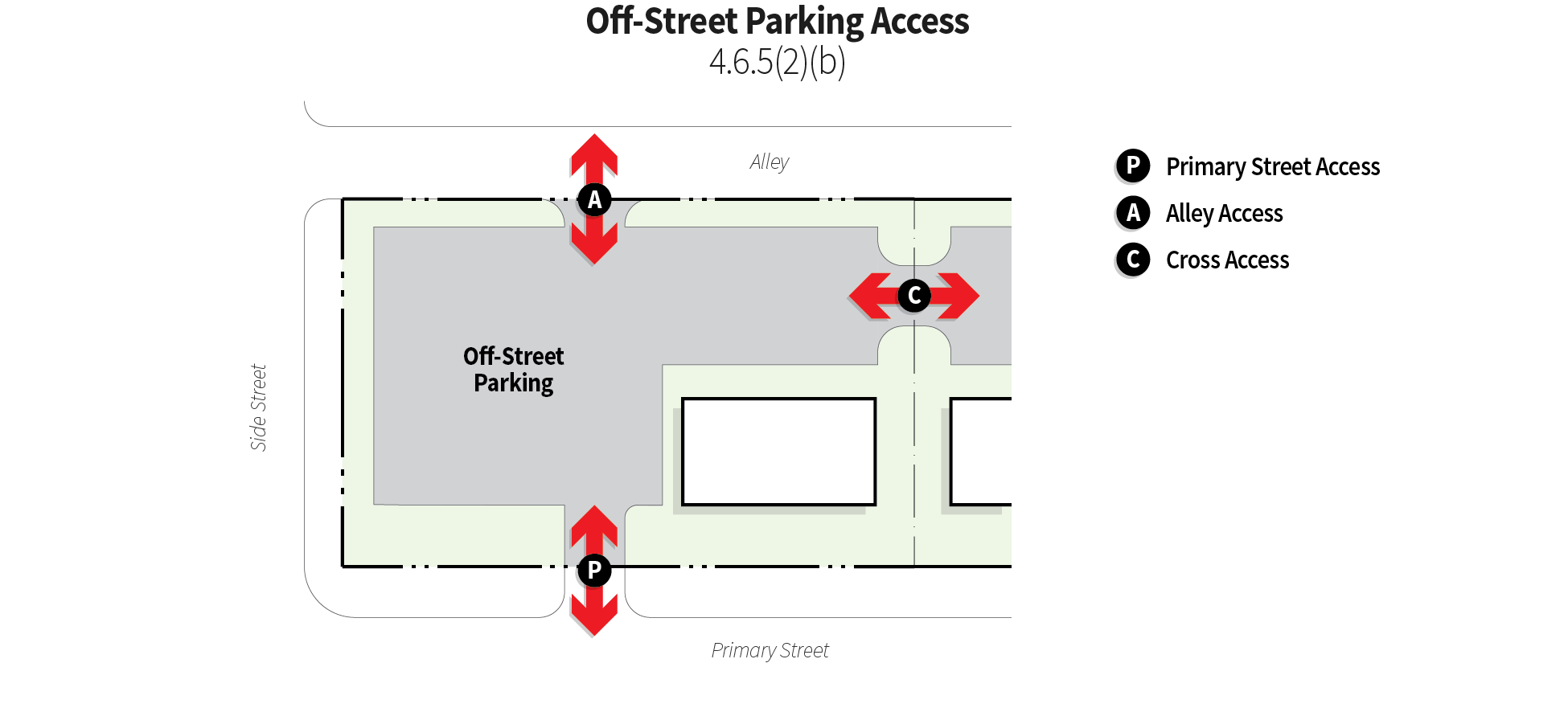 All required off-street parking facilities shall have vehicular access from a street, alley, driveway, or cross-access connection.