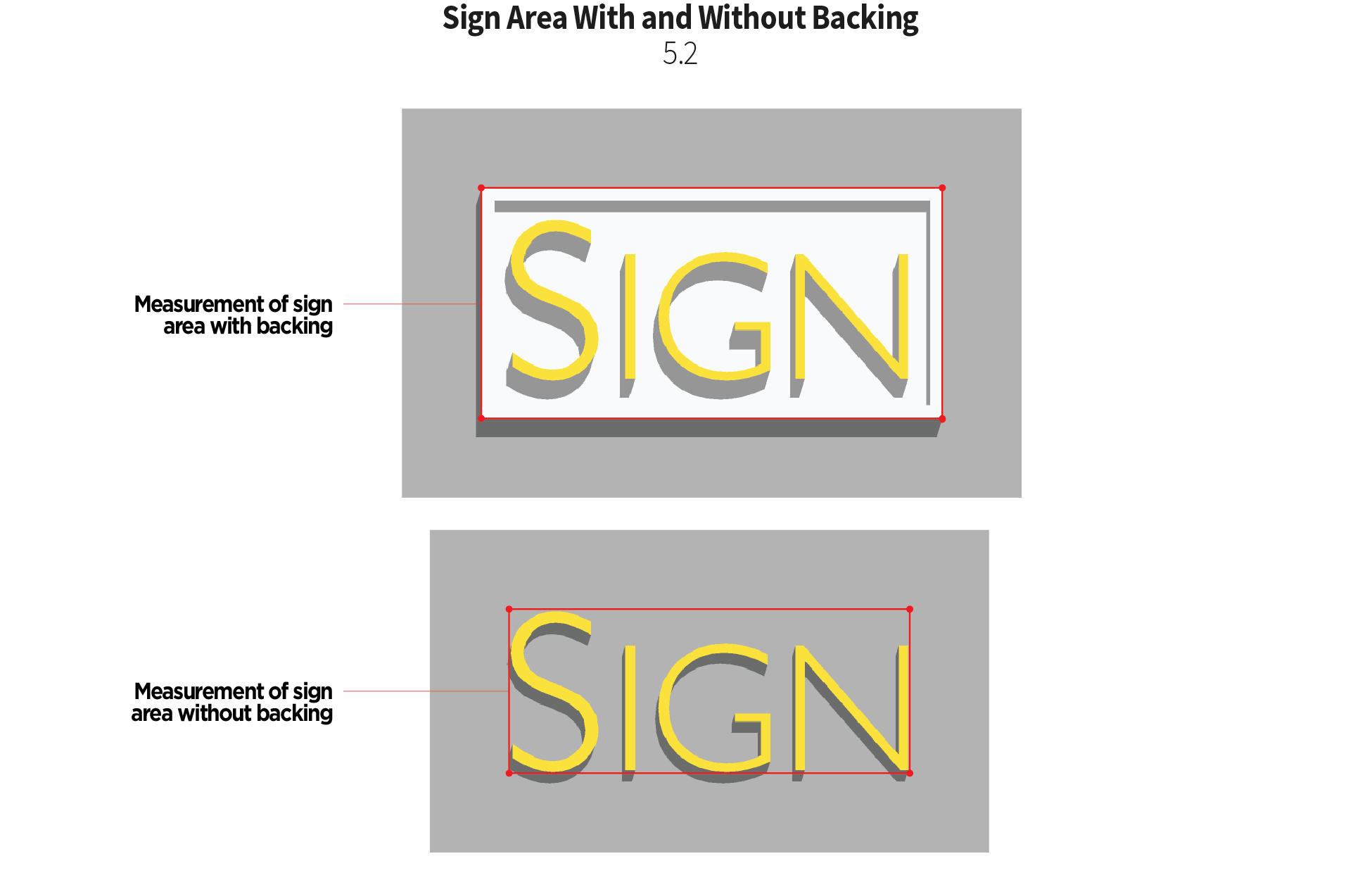 Area of sign with backing. The area of all signs with backing shall be measured by computing the area of the sign backing.