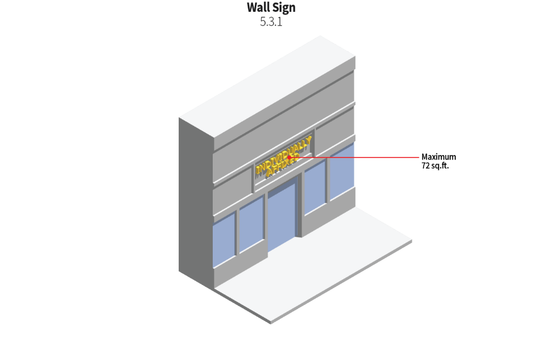 Size. Wall signs may be a maximum of seventy-two (72) square feet in area or may cover five (5) percent of the building frontage on which the sign shall be located, whichever is less. Wall signs are not required to be less than thirty-two (32) square feet in area.
