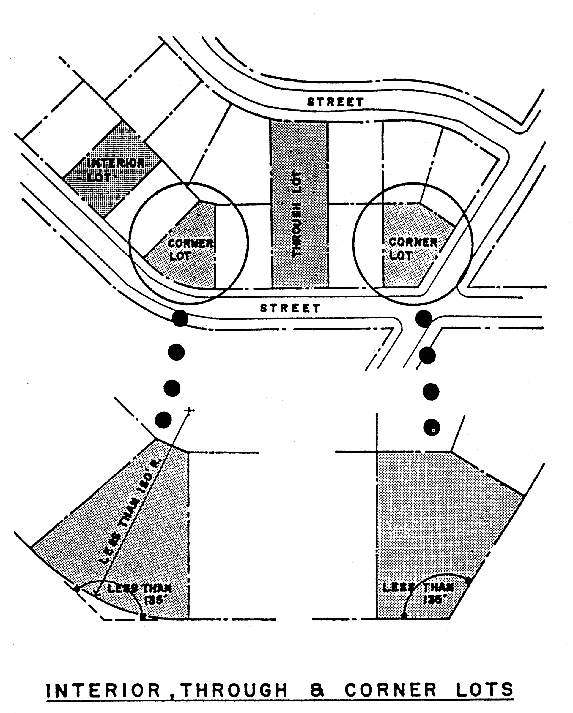 Lot, interior, means any lot other than a corner lot. (See Interior, Through, and Corner lots diagram.)