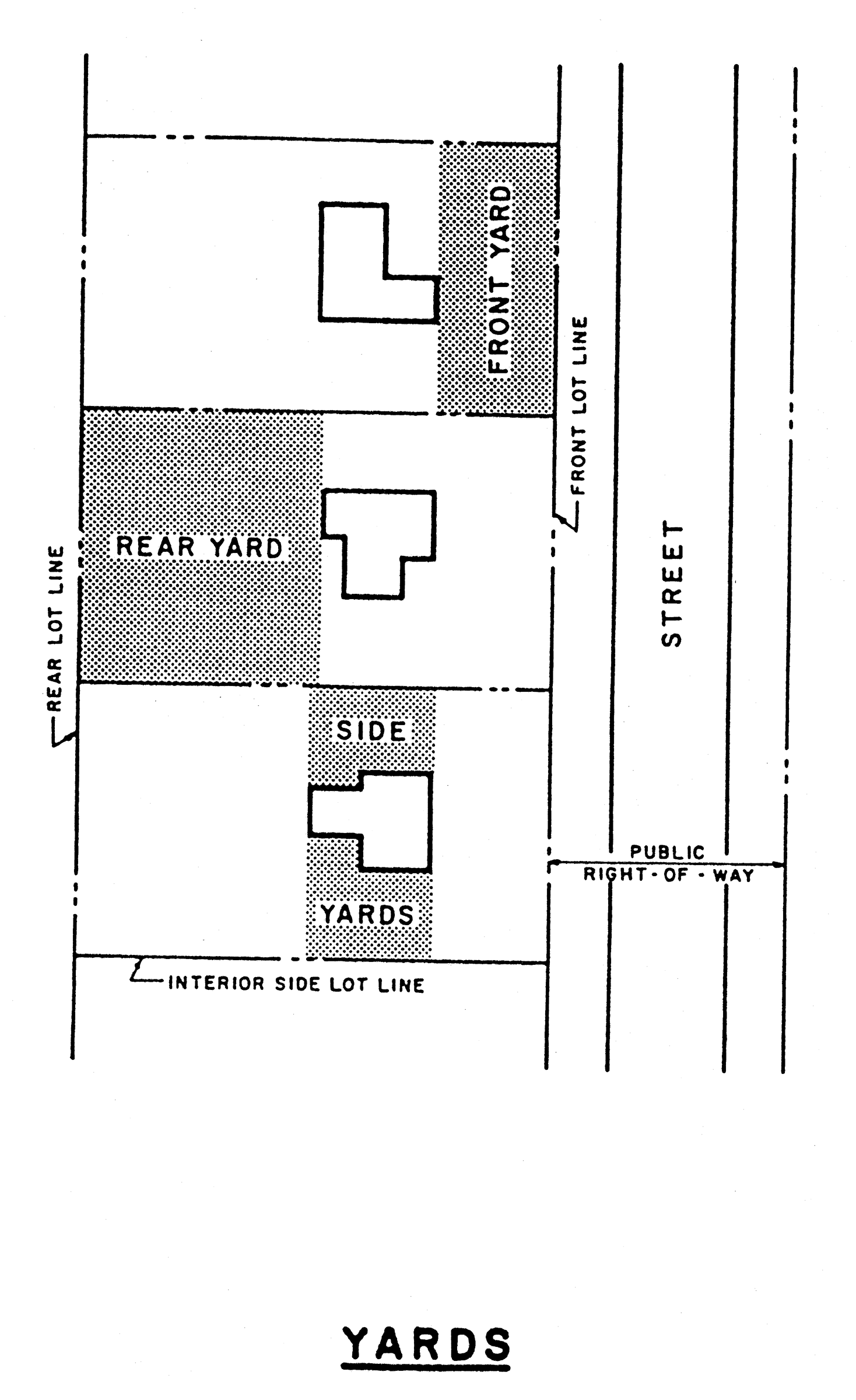 Yards means the open spaces on the same lot with a main building unoccupied and unobstructed from the ground upward except as otherwise provided in this chapter, and further defined as follows: