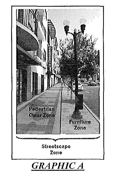 Street furniture zone. The paved portion of the streetscape zone typically located between the back or curb and the sidewalk. The street furniture zone typically includes street light poles and lights, utility poles, regulatory signage, traffic signal equipment and street trees. In some cases, a streetscape zone may not have a furniture zone. See Graphic A below definition of Streetscape Zone