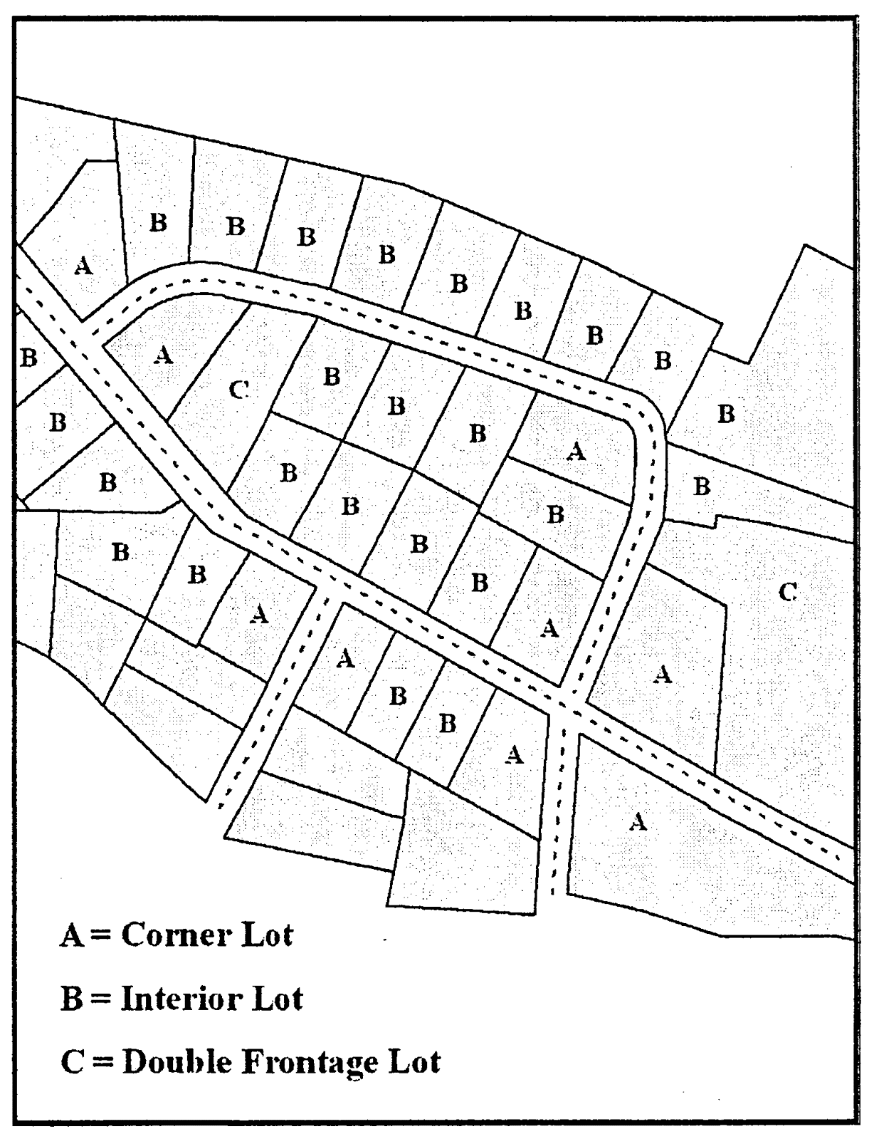 Lot types. Figure 44-404-3 illustrates the terminology used with reference to corner, interior and double frontage lots.