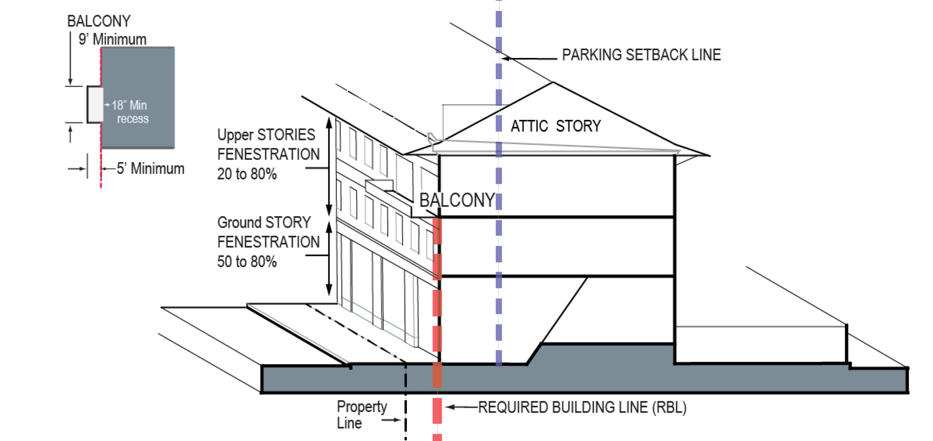 Five feet when adjacent to a public right-of-way, with the exception when adjacent to a public alleyway, in which case no less than three feet setback shall be required.