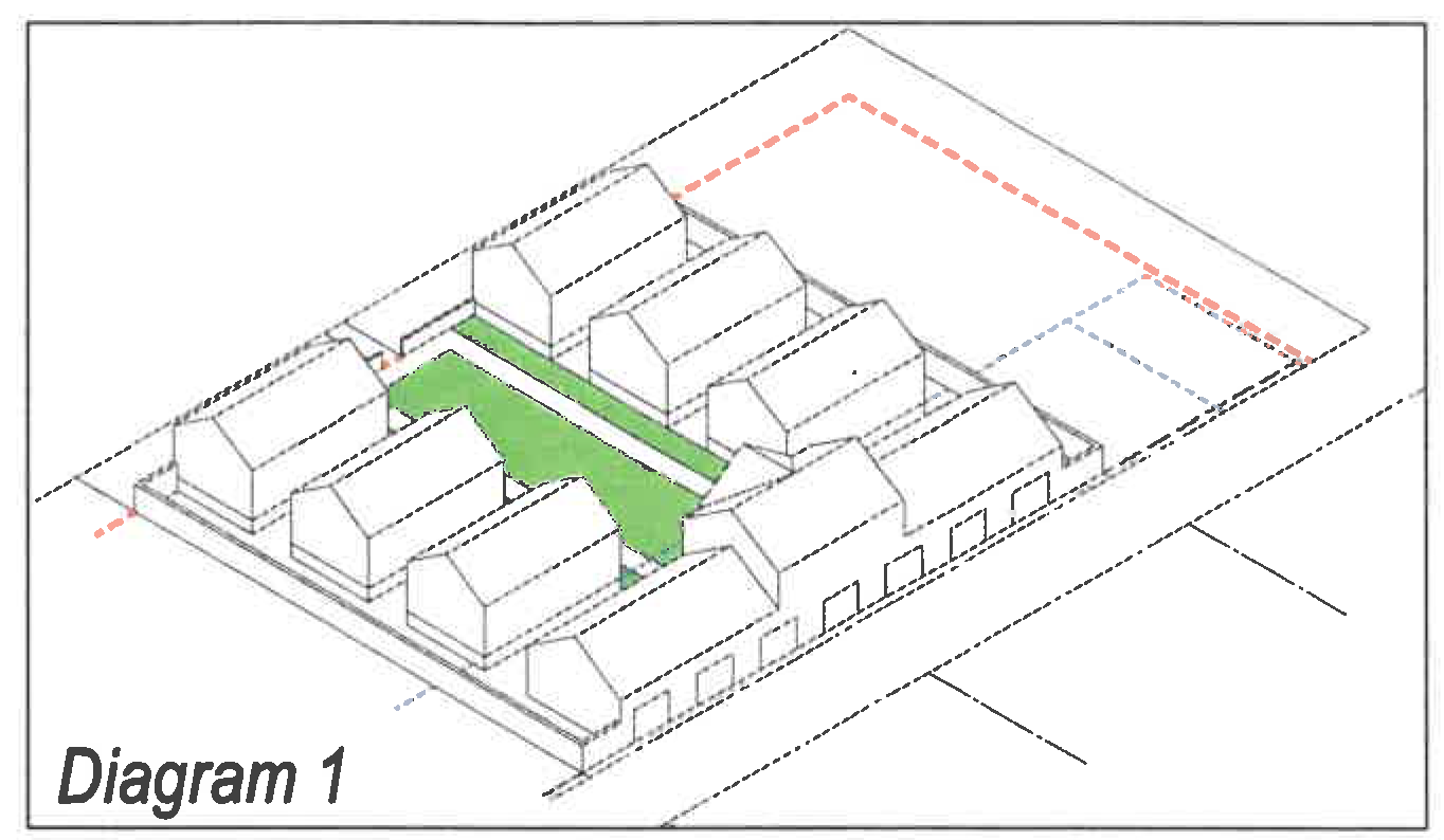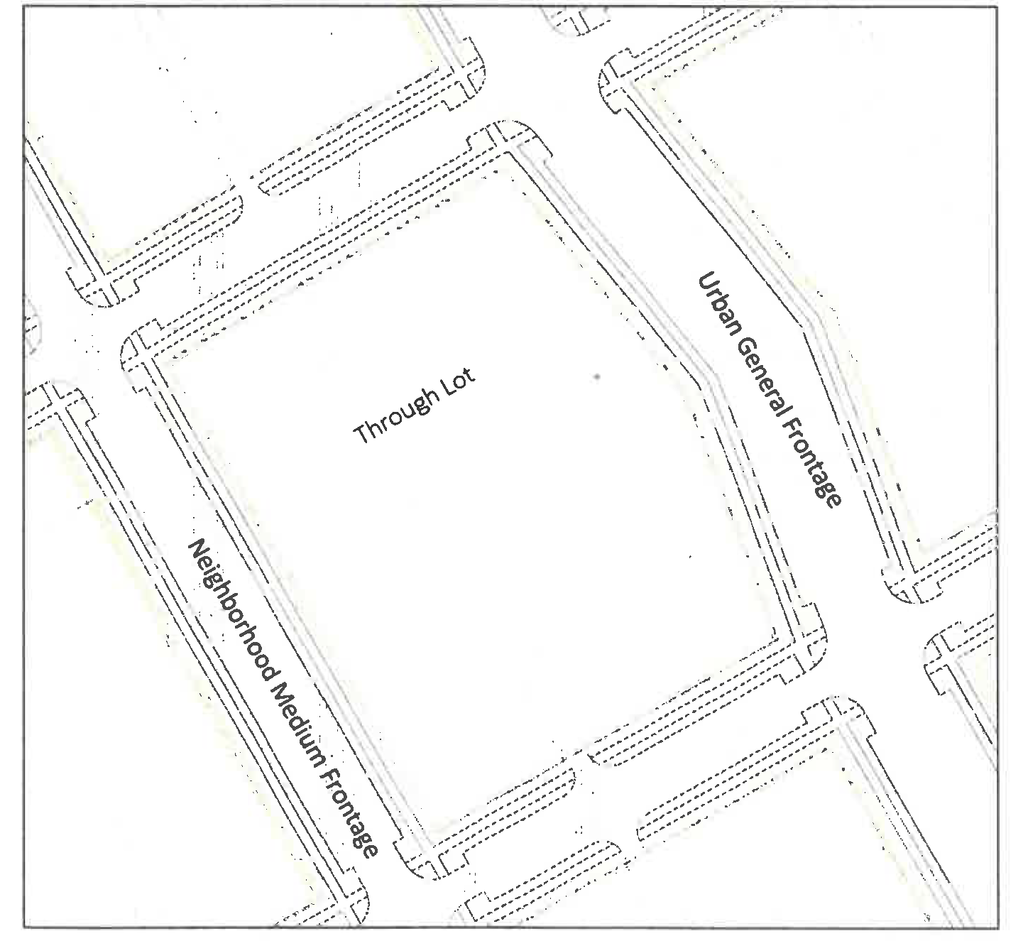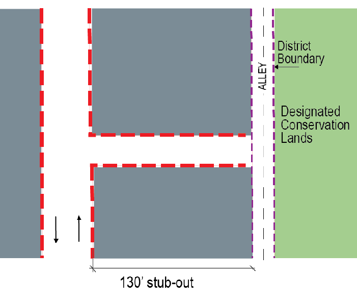 In lieu of public street frontage of at least 40 feet width, access and utility easements must be provided to the proposed lots, said easements intended to provide a route of vehicular and pedestrian access and also a route for the establishment/extension of utility services, municipal sanitary sewers and other necessary public infrastructure. Said easements must be at least 25-foot width servicing one single-unit dwelling and 50 foot-width for two single-unit dwellings or for a duplex dwelling or multi-unit dwellings.