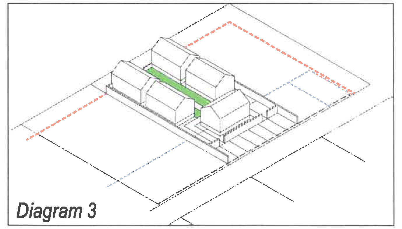 No duplex residence or multi-unit dwellings (three units or more) shall be established on such lots in neighborhoods where at least 50 percent of the abutting properties are occupied by single-unit dwellings or where the prevailing use of properties on the same block (50 percent or more of all properties) are single-unit residential dwellings. In those cases where it is appropriate to establish a lot for an allowable duplex or multi-unit use, an access easement measuring at least 50 feet wide shall be provided to not more than one duplex or one multi-unit dwelling (three units or more).