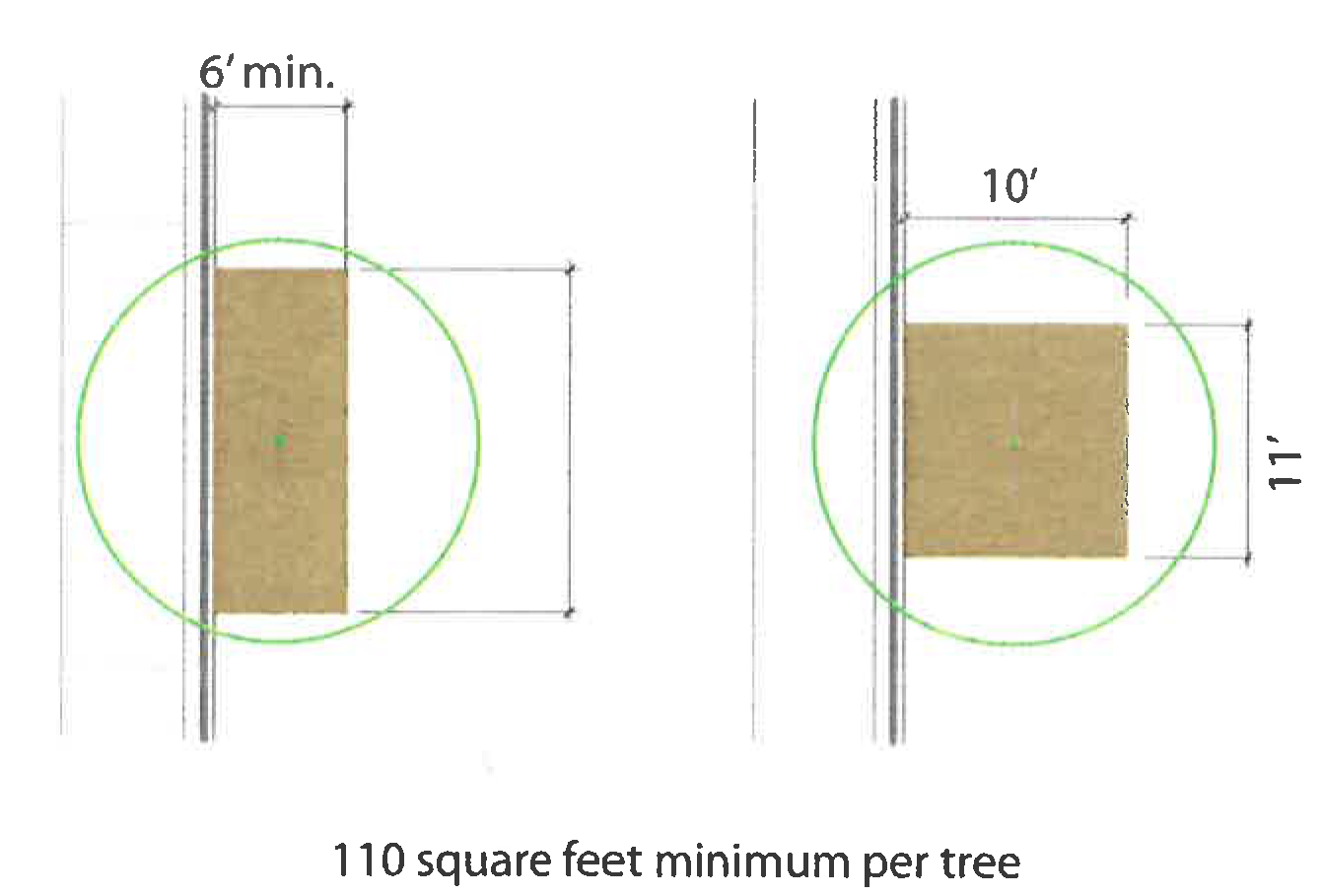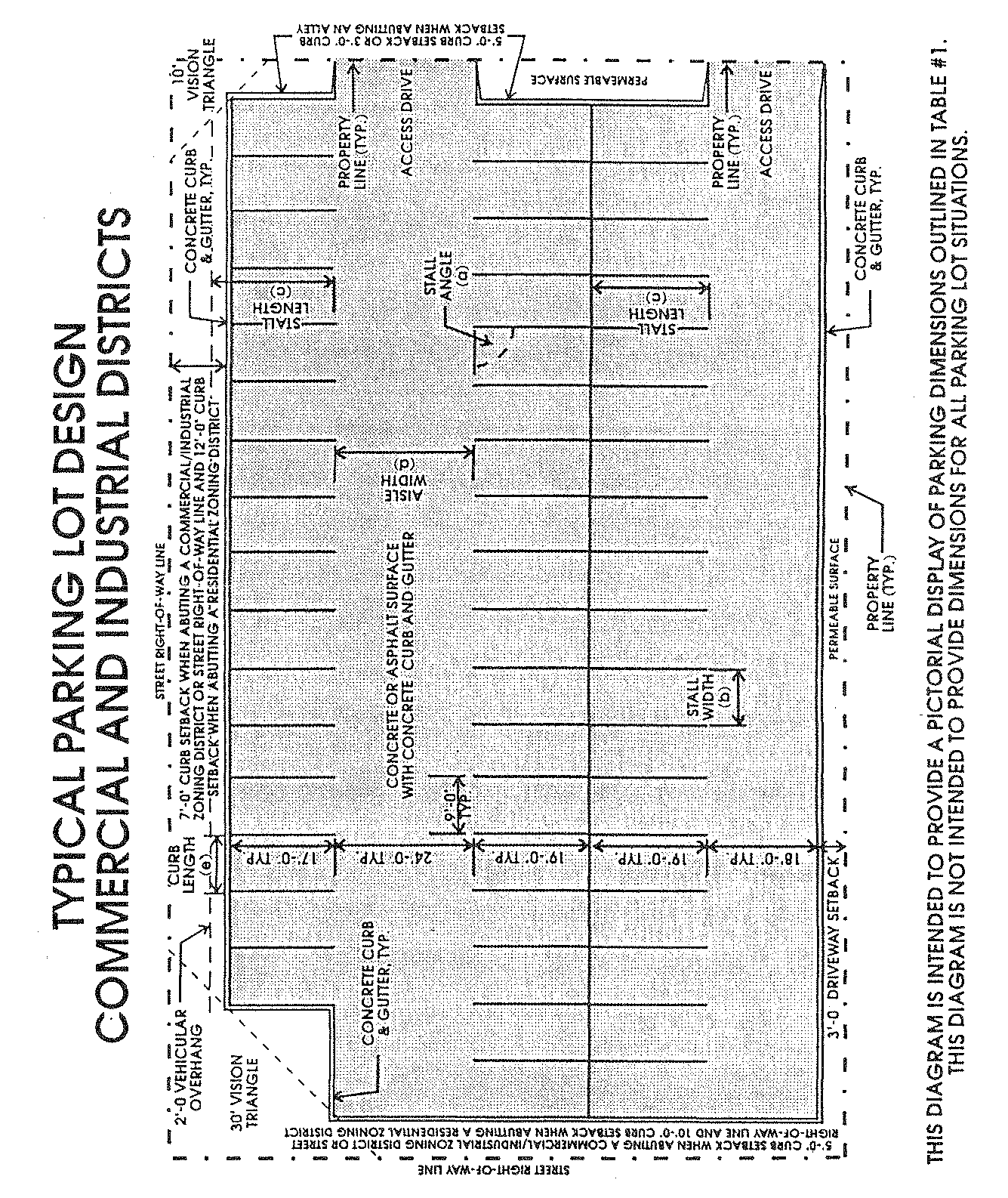 It is the intent of this regulation that in parking development sites open green space and landscape areas should be distributed throughout the parking development site rather than isolated in one area or around the perimeter of the parking lot. Trees and shrubs planted within parking areas shall be protected by concrete curbs and provide adequate permeable surface area to promote growth and full maturity of said vegetation.