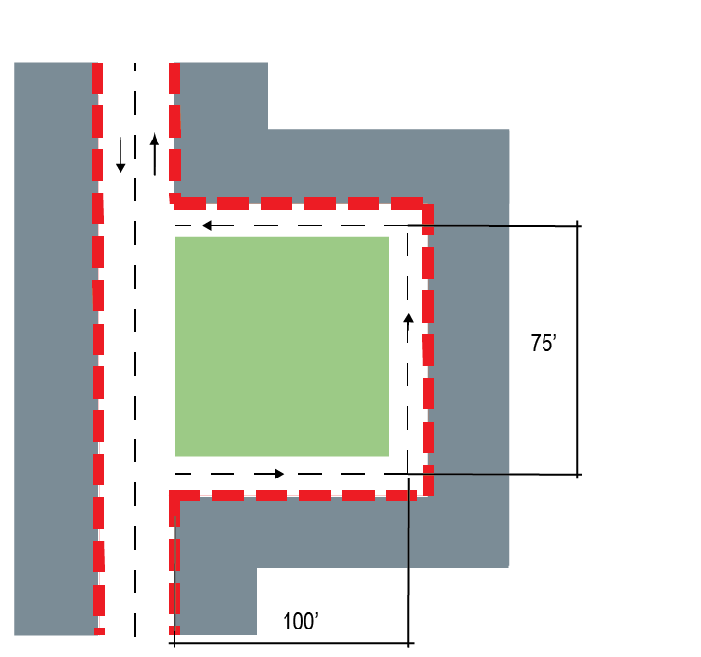 Accommodates no more than one vehicle, with a stall dimension no larger than 12 feet in width by 25 feet in length (not including the flare).