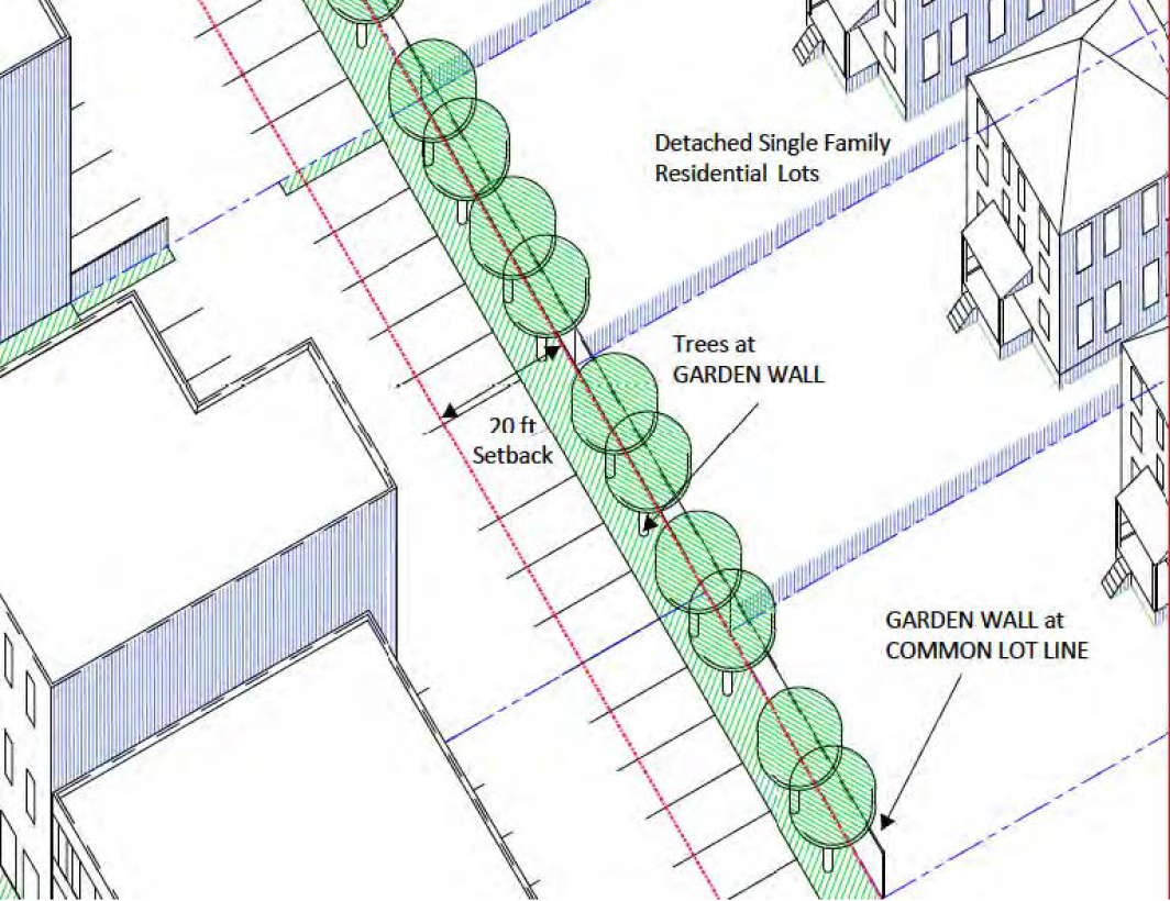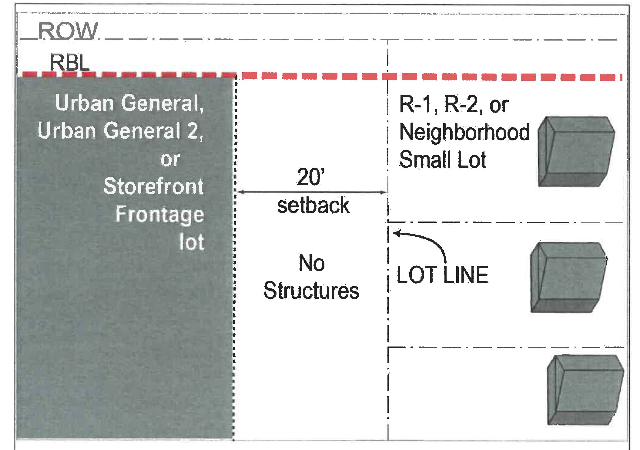All setback areas shall consist of permeable material (grass, wood chips, loose rock or other ground cover material) and be screened in accordance with the peripheral landscaping requirements as stated herein.