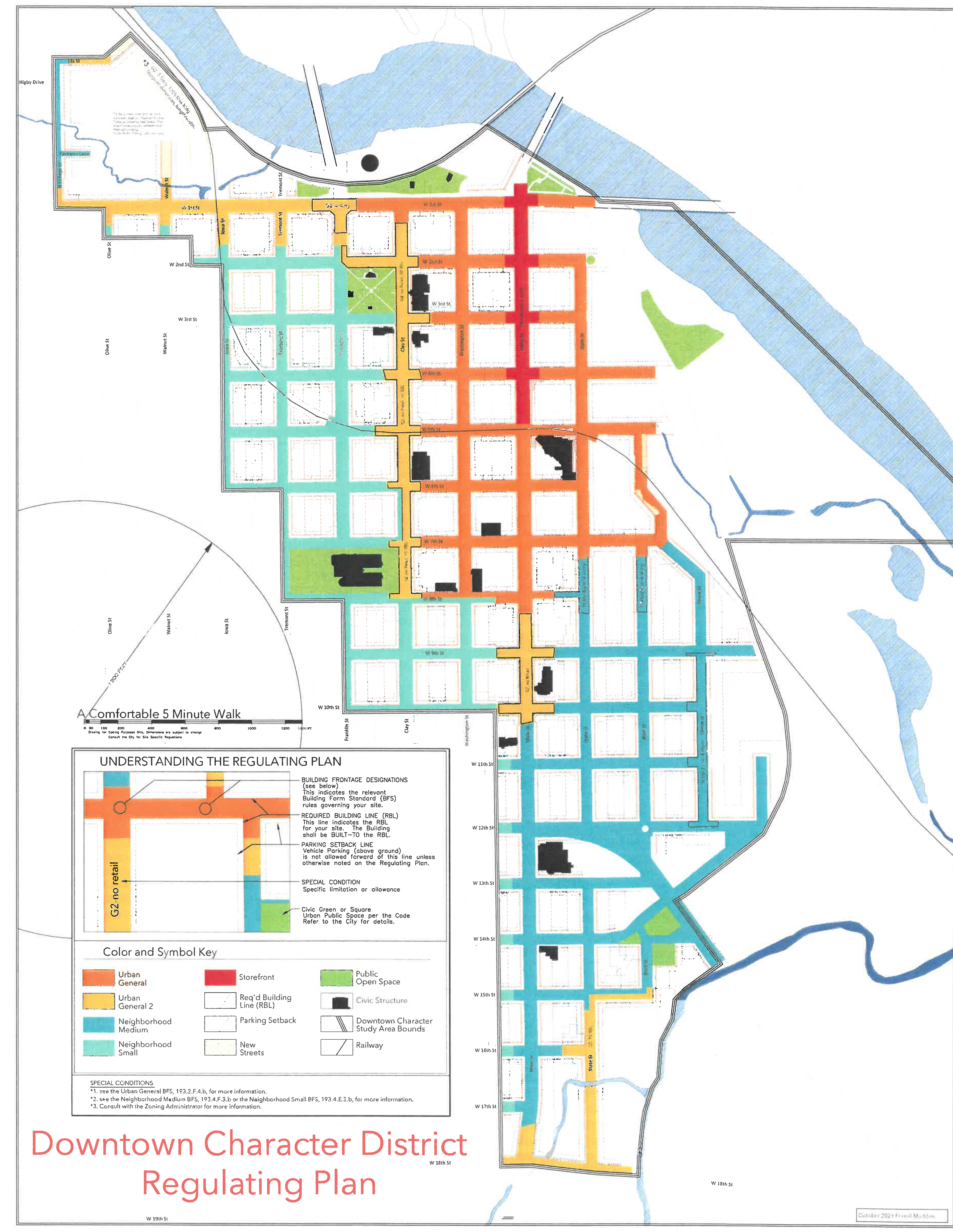 Character district regulating plans. The boundaries of each character district shall be indicated on the zoning map of the city and shall be governed by the associated regulating plan, which shall be the zoning map for each said character district and shall be made a part of this article by reference. Each regulating plan is on file in the office of the city planner in hard copy and as a digital file, at the city hall. It shall be the responsibility of the city planner to see that the regulating plan is kept current at all times. To the extent there is any inconsistency between the regulating plan held on file in the office of the city planner and the digital regulating plan, the digital regulating plan shall take precedence.