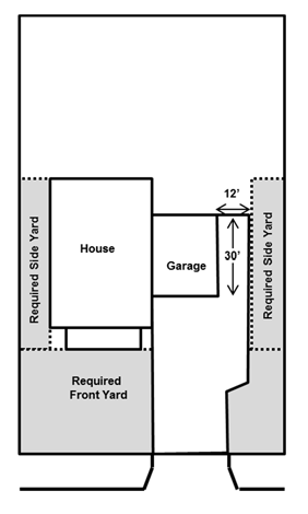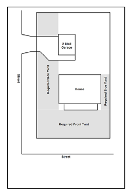 A driveway may be located in the rear yard or in the required rear yard if it accesses a permitted garage, shed or other accessory structure. Furthermore, the following may be permitted (refer to Figures 10 and 11):