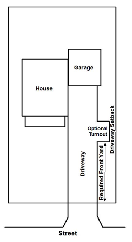 A driveway may have one turn out in order for vehicles to maneuver in the driveway such that a driveway could be exited face-forward, provided the turn out meets the following requirements (refer to figure 8):