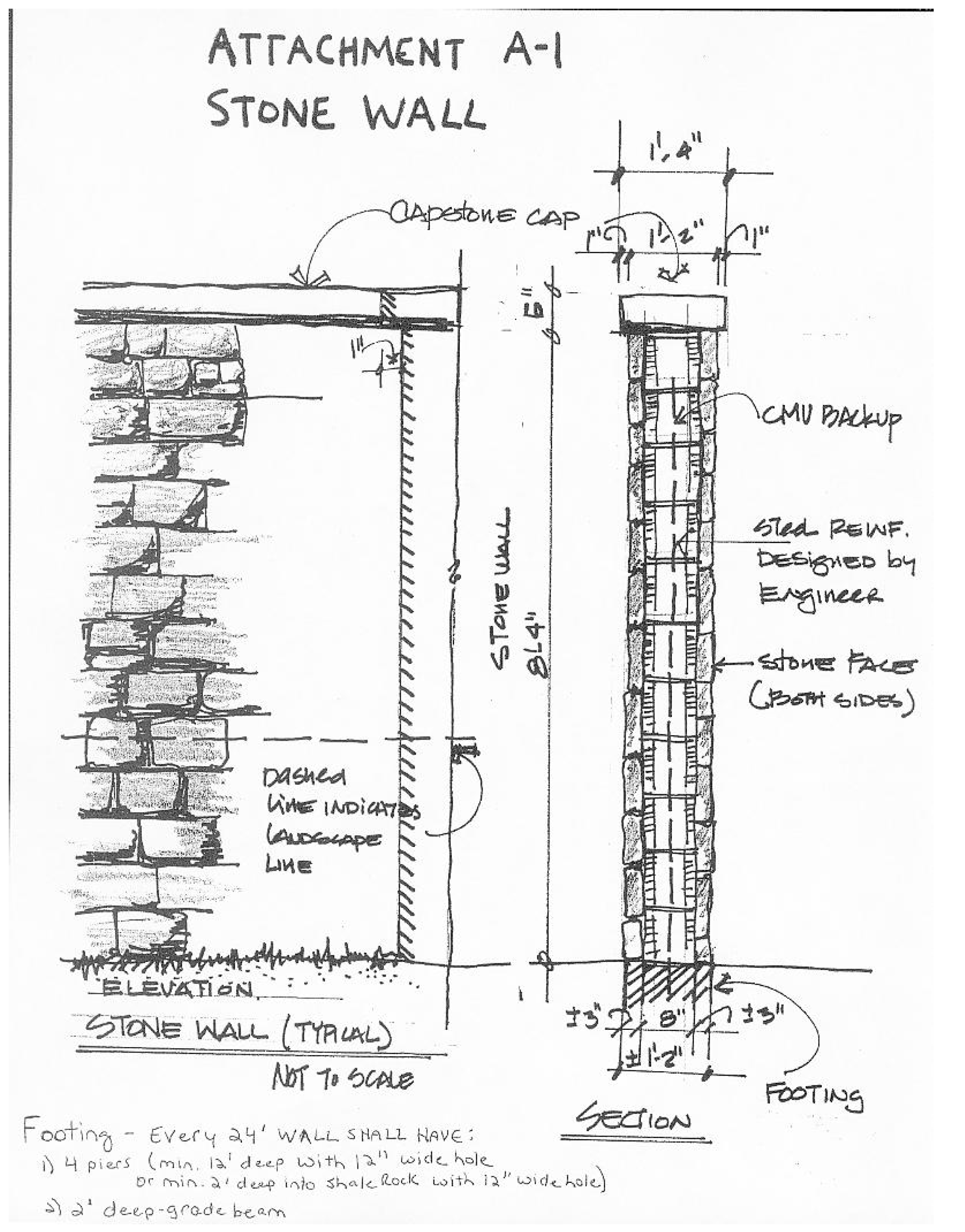 OPTION A. The perimeter-screening fence shall be an eight-foot masonry wall constructed of Granbury stone or approved equal with a buff color mortar and a cast stone cap. See Attachment A-I for wall detail.