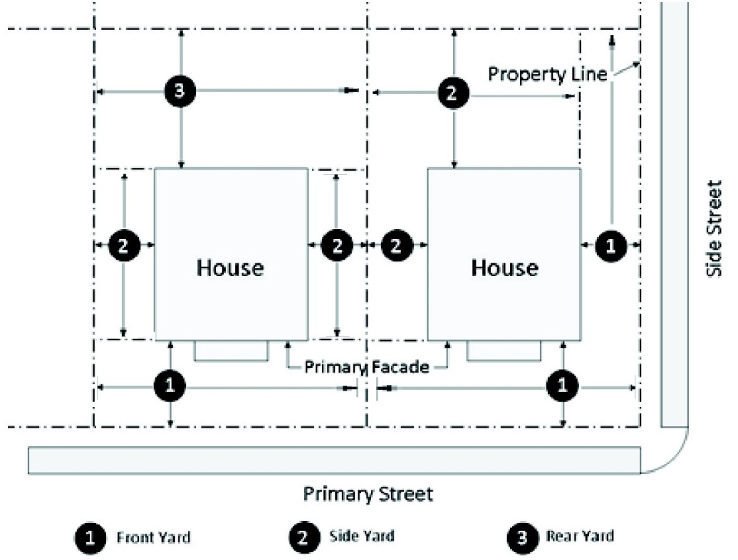 On a corner lot, each lot line which abuts a public or private street is a front lot line and the required front yard setback from each front lot line shall be met, subject to section 32-532. The owner shall elect, and so designate in the application for a permit, which of the remaining two lot lines shall be the side lot line and which the rear lot line. For a corner lot with three front lot lines, the remaining lot line shall be a rear lot line.