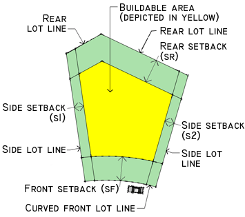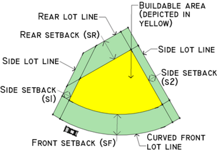 Where lot lines are curvilinear, setbacks shall be measured as offsets from the curvilinear lot line.
