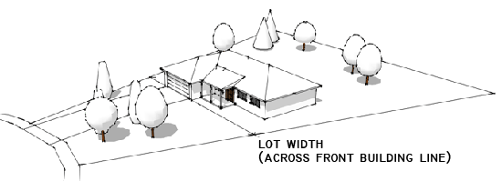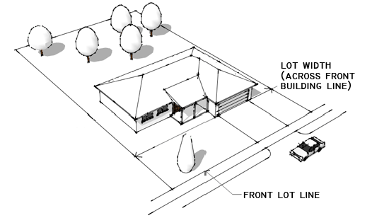 Irregular Lots. Lot width is the distance from one side lot line to the opposite side lot line at the front building line. See Figure 12-3-203C, Measurement of Lot Width; Irregular Lots. Generally, the front building line is the front setback line. However, an alternative front building line may be established on the plat of a subdivision that is more distant than the front setback line from the front lot line. Lot width must be maintained to a depth that is sufficient to accommodate a reasonable building in the context of adjacent and nearby lots.