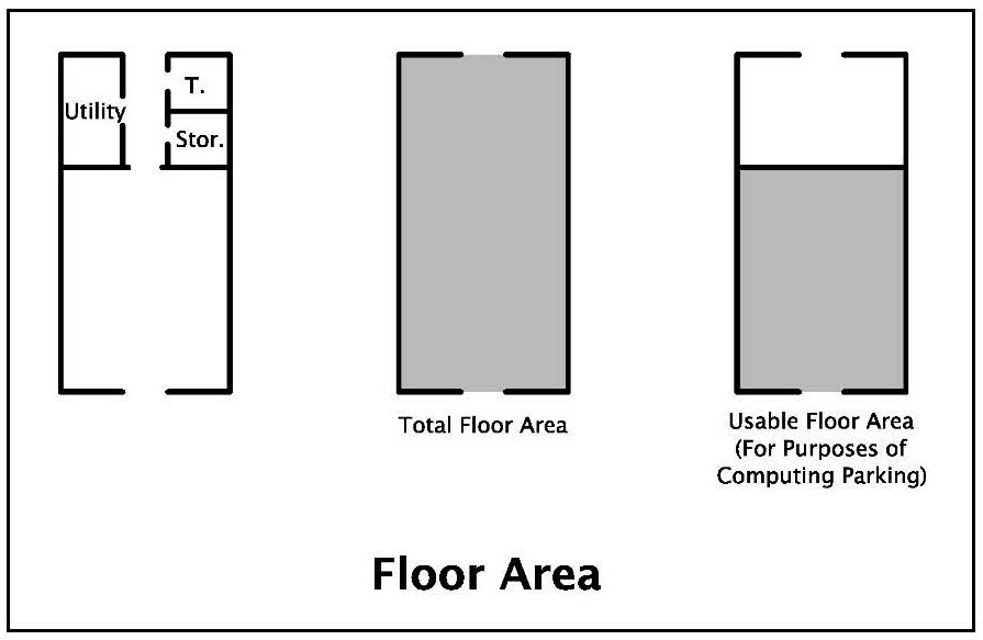 Floor area, gross: The floor area within the inside perimeter of the walls of a building under consideration, exclusive of vent shafts and courts, without deduction for corridors, stairways, closets, the thickness of interior walls, columns, or other features. The floor area of a building, or portion thereof, not provided with surrounding exterior walls shall be the useable area under the horizontal projection of the roof or floor above. The gross floor area shall not include shafts with no openings or interior courts.