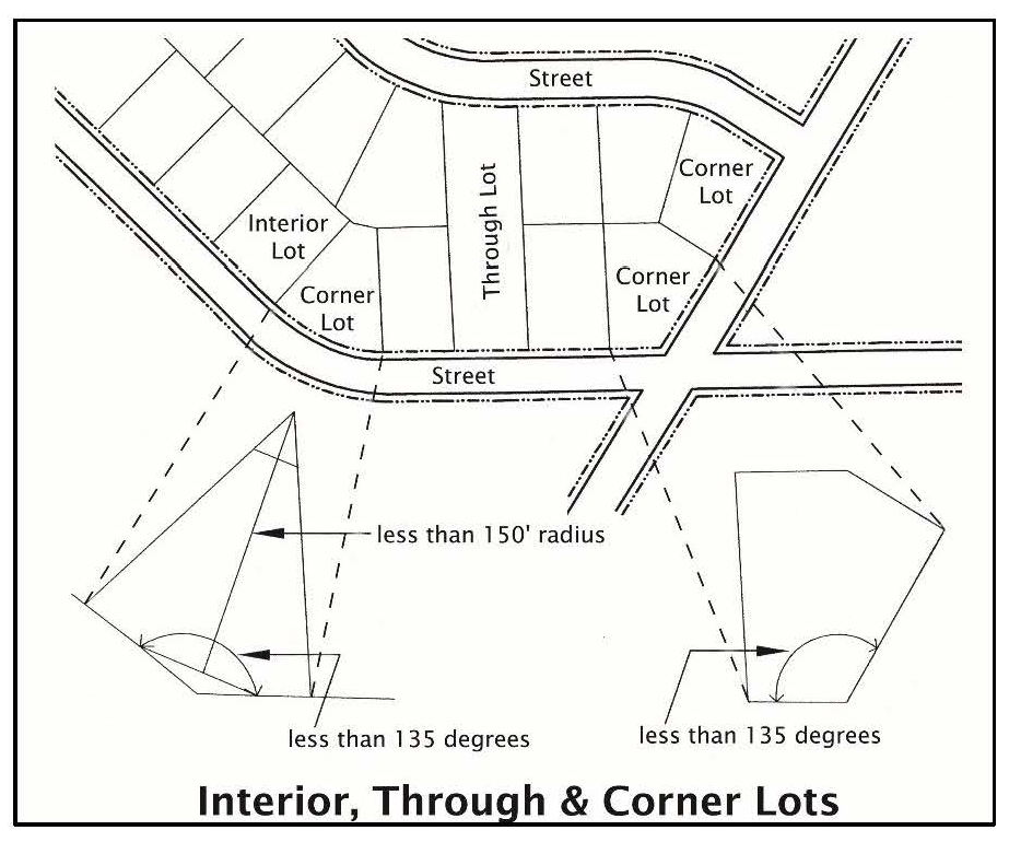 Lot, interior: Any lot other than a corner lot. (See the diagram.)