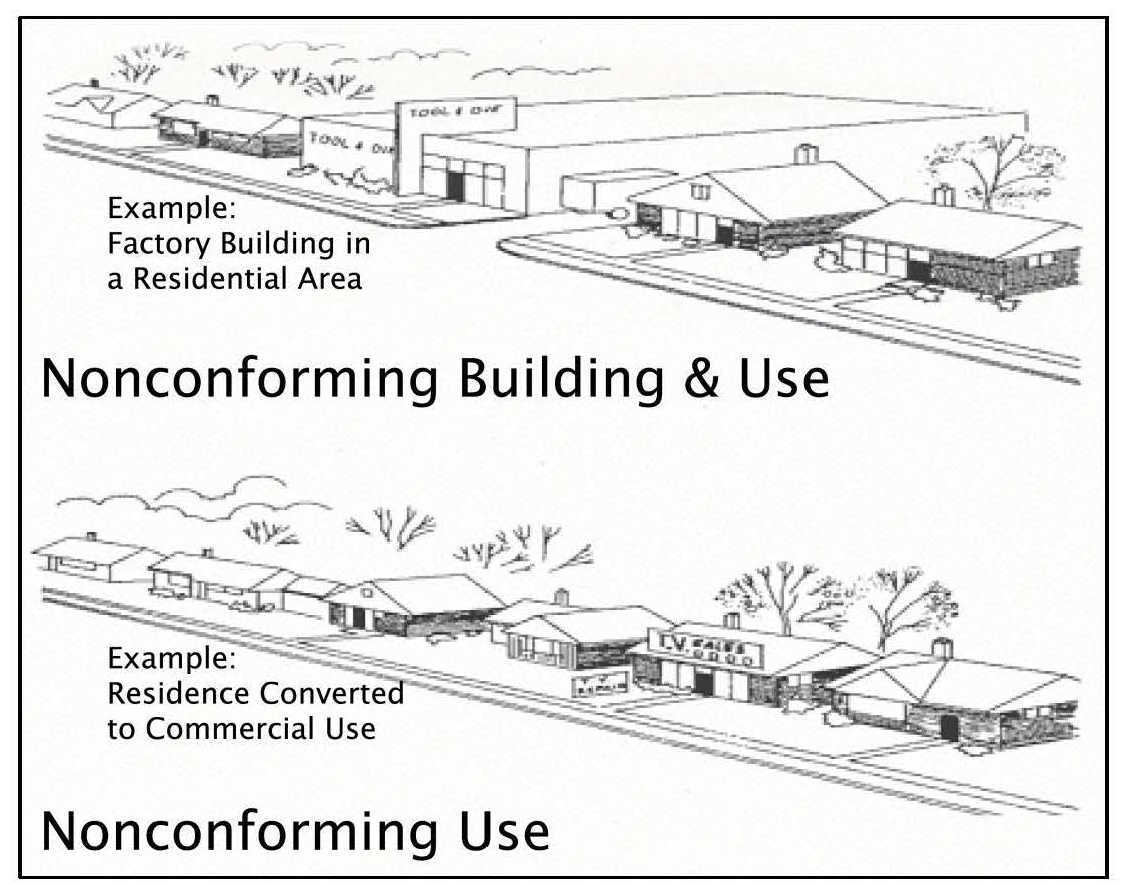 Nonconforming use: Any use thereof or the use of land that does not conform with the regulations of this comprehensive amendment or any amendments thereto governing use of the district in which it is located but conformed with all of the codes, ordinances and other legal requirements applicable at the time such building or structure was erected, enlarged or altered, and the use thereof or the use of land was established.