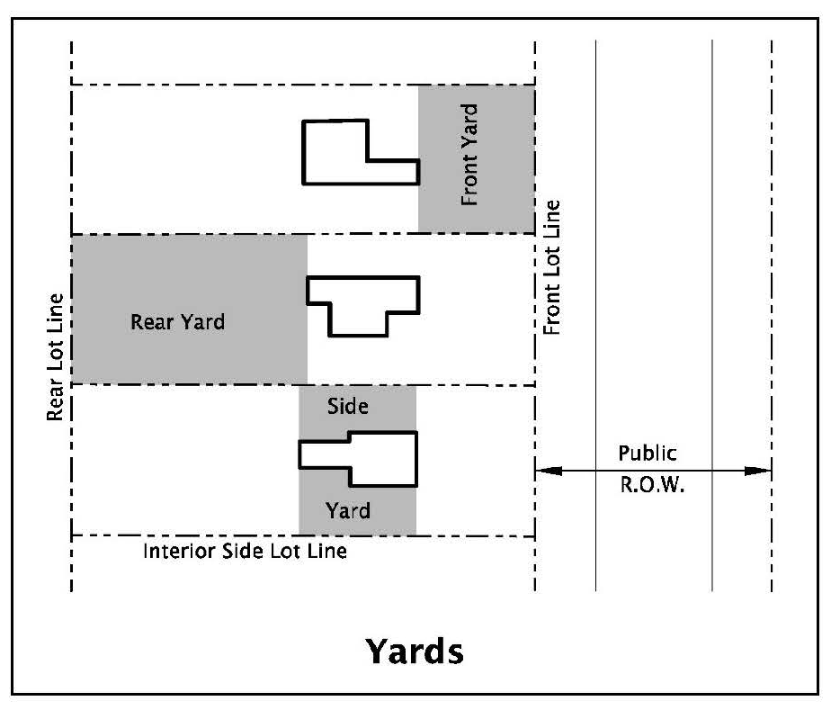 Rear yard: Is an open space extending the full width of the lot, the depth of which is the minimum horizontal distance between the rear lot line and the nearest line of the main building.