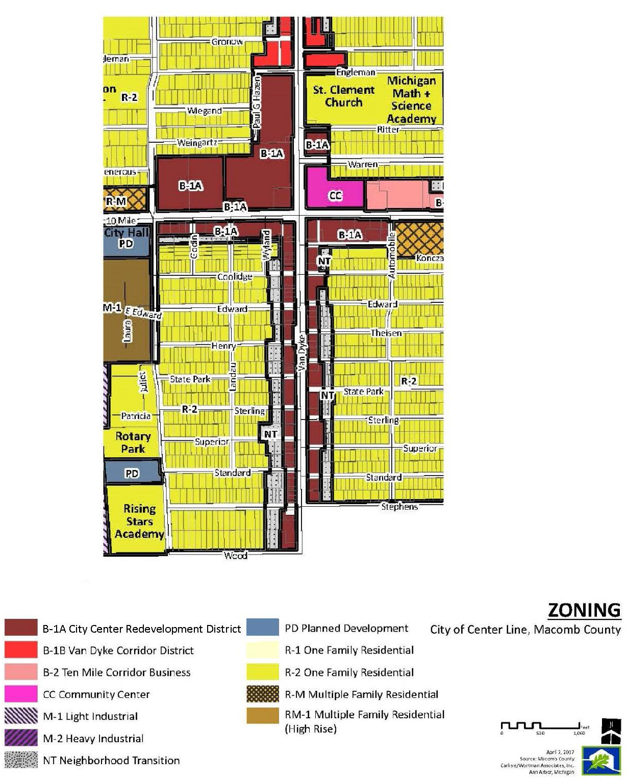 The B-1A district recognizes the importance of Van Dyke Avenue as both a gateway into and the main corridor through the city and is designed to implement the goals of City of Center Line Master Plan.
