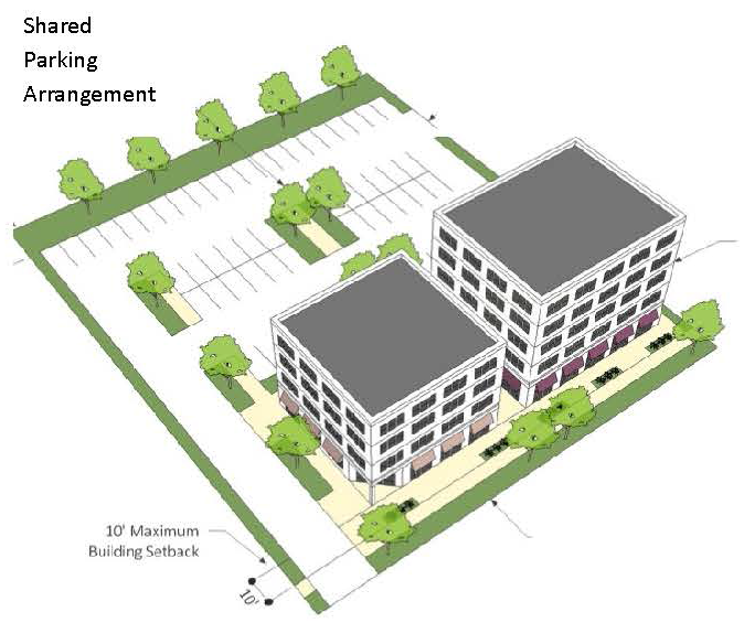 Shared parking lots are encouraged for neighboring uses that operate at different times over a 24-hour period. The planning commission may permit a shared parking arrangement upon finding that there is not a substantial conflict in the peak parking demand of neighboring uses. The planning commission may require that the applicant submit parking studies, data and/or documentation to validate peak parking demand.