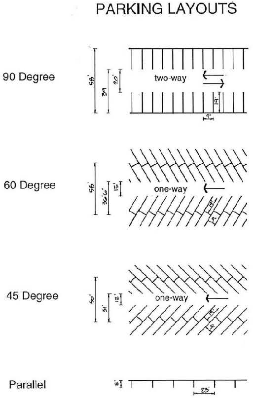Plans for the layout of off-street parking facilities shall be in accord with the following minimum requirements: