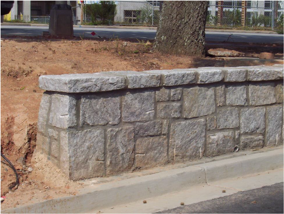 Walls within limits of streetscape requirement are encouraged to be granite veneer masonry walls or granite rubble masonry walls as indicated by the following graphics:
