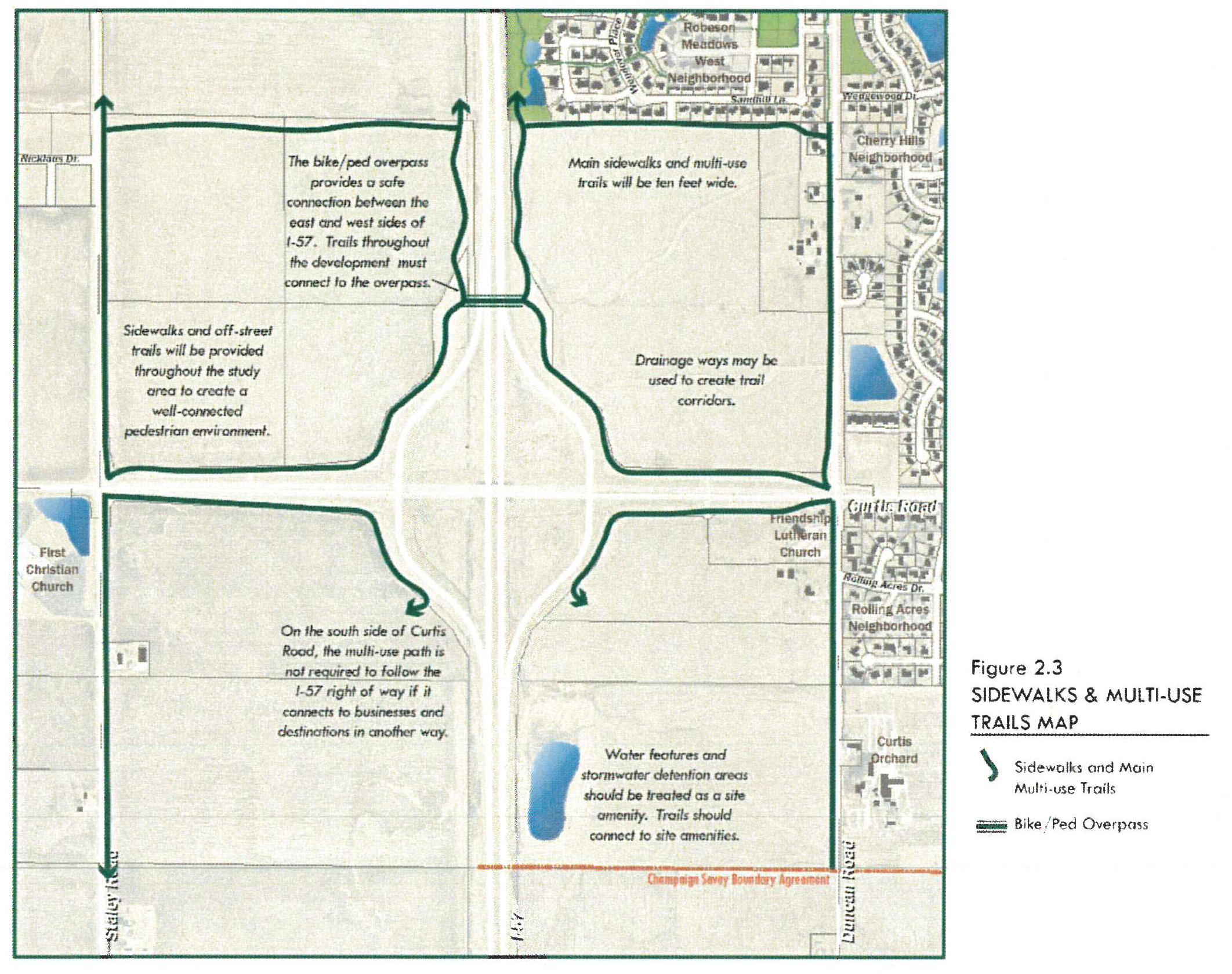 The purpose of this section is to establish substantive standards for development of land identified as being in the Curtis Road Interchange Area Overlay District in the Curtis Road Interchange Area Master Plan, an element of the City's Comprehensive Plan, and to establish a zoning approval process. Developments within the Curtis Road Interchange Area Overlay District that are located within the corporate boundaries of the City, or that are subject to an annexation agreement with the City that sets forth the City zoning requirements that will apply to the development of the property subject to said agreement, are required to meet higher standards for design than in other areas in the City. This is the City's primary southern entryway from Interstate-57. Development within these districts is subject to the provisions of the specific zoning district, as well as to the following provisions within this article.