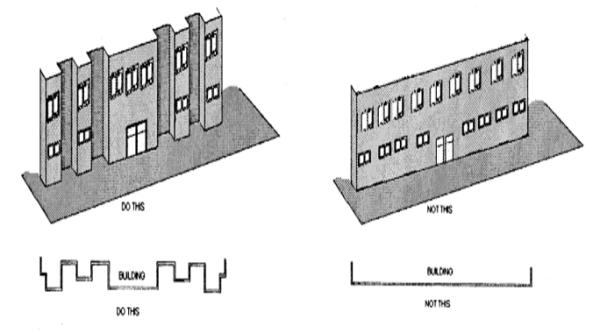 1) Building Length: Maximum of 250 feet without a major break in the building facade.