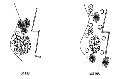 e) Creation of unified site designs, each with a sense of internal order, that provide desirable environments for site users and visitors and the community as a whole and that consider all site elements including: the relationship of buildings to surrounding landforms; grading; architectural design; building, parking and loading dock orientation; building height; use of manmade materials, including paving; site furnishings (lighting, outdoor seating, signage, etc.); landscaping (retention of natural vegetation, plant selection and placement, retention and incorporation of water features, etc.); and other visible outdoor site elements.